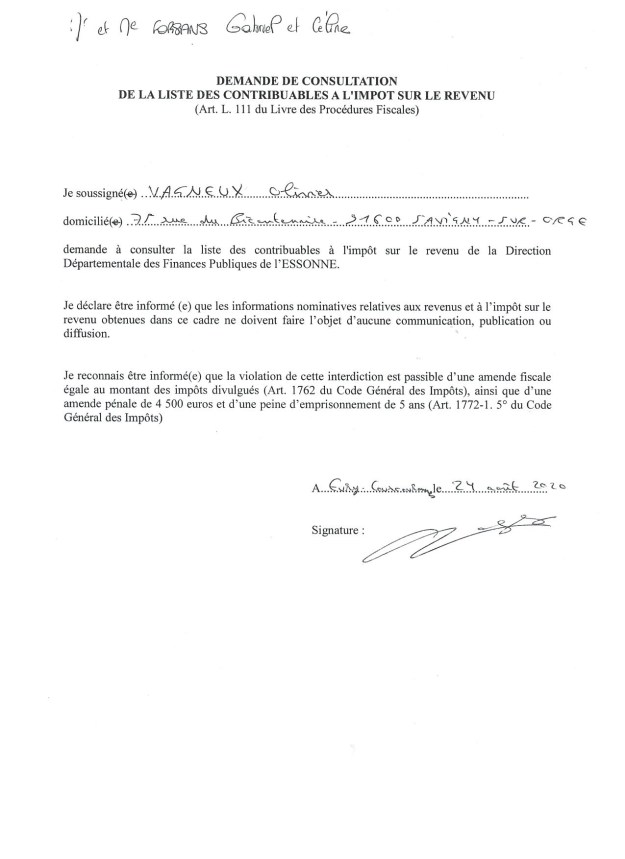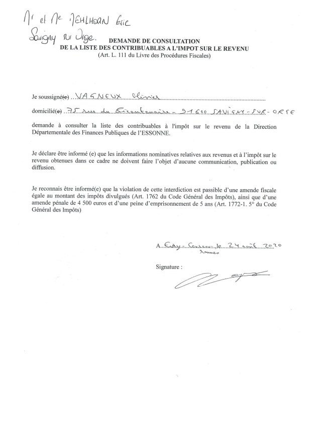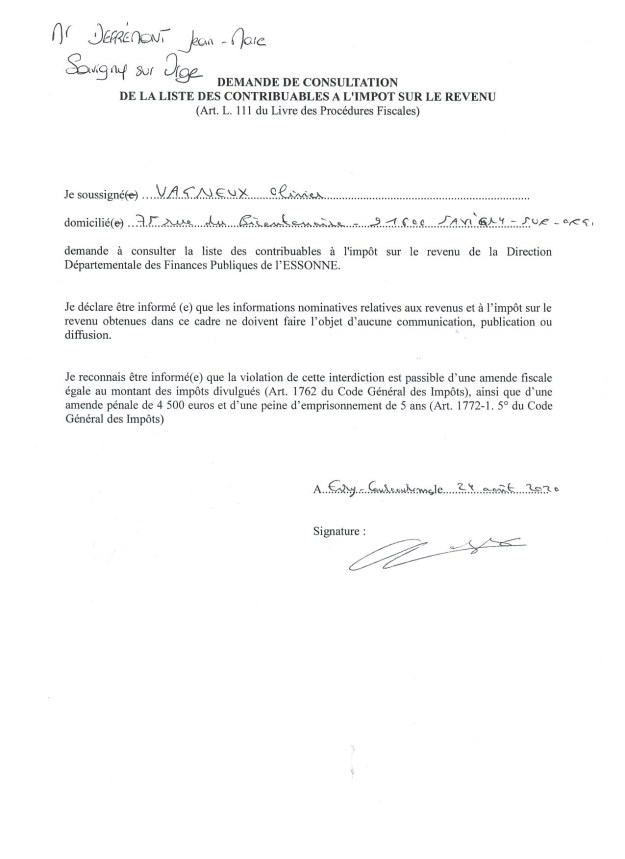 - Enfin, je me suis rendu à la Direction départementale des finances publiques et j’ai demandé à consulter le montant de l’impôt sur le revenu de quelques « amis ».