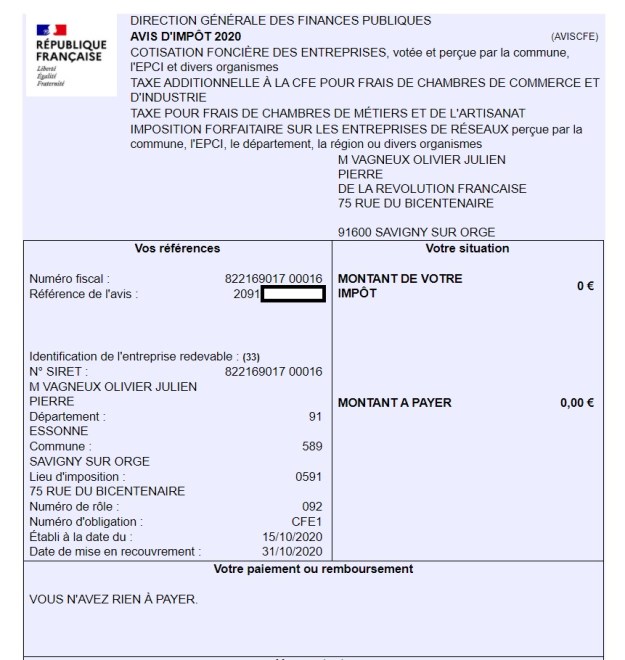 Au passage, le seul avantage d’avoir peu de revenus : mon exonération de CFE (cotisation foncière des entreprises).