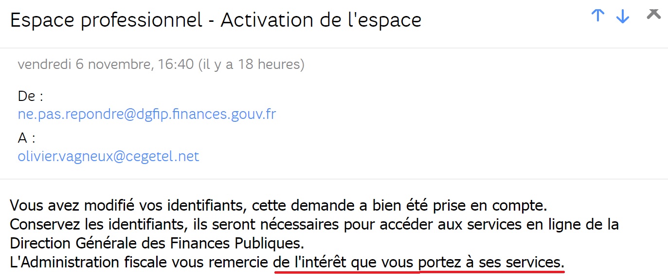 Je m’amuse aussi que l’administration fiscale considère que changer le mot de passe de mon espace professionnel sur le site des impôts signifie que je porte de l’intérêt à ses services. J’y suis juste contraint comme tous les autres gens…