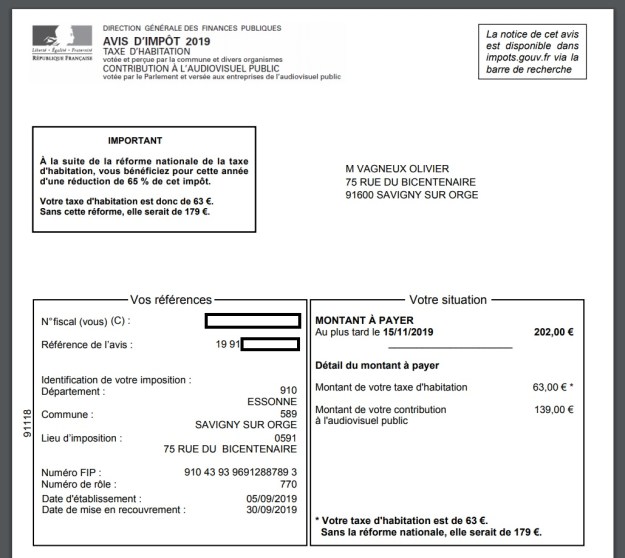 Voici ce que je peux lire sur mon avis d’imposition sur la taxe d’habitation 2020.