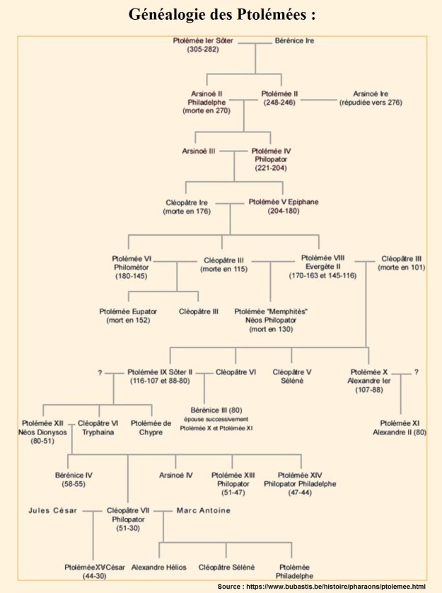 Le troisième et dernier problème est que nous connaissons à peu près la généalogie de CLÉOPÂTRE, qui ne serait que le fruit dégénéré de sept générations de Macédoniens consanguins, se mariant entre frères et sœurs pour préserver la pureté de leur lignée.