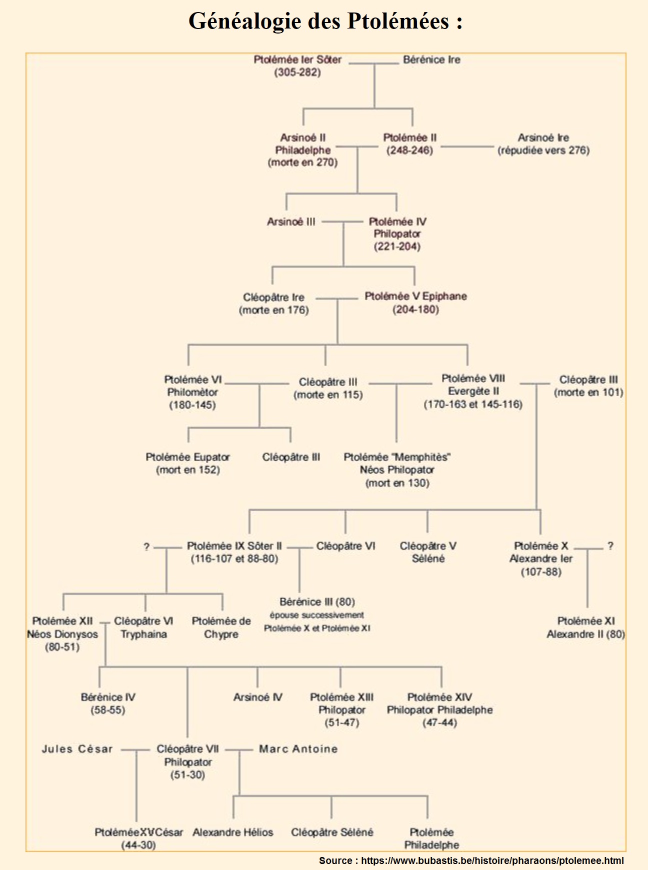 En l’état de la recherche historique, CLÉOPÂTRE serait bien la fille de son père mais pas celle de la femme et sœur de son père.