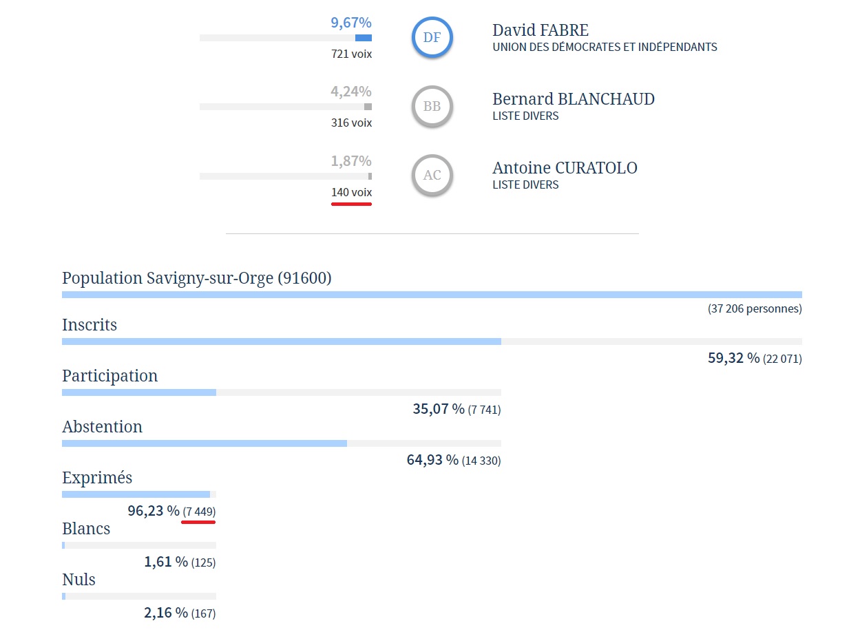 Étant précisé que IZARD a obtenu comme deuxième meilleur résultat 26 % au premier tour et 37 % au second (comme par hasard sur un lieu de distribution de colis alimentaires pendant le confinement).