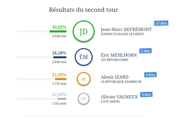 Avec 7 449 suffrages exprimés, il fallait obtenir 10 % des votes, soit 745 voix pour se qualifier pour le second tour des élections municipales.