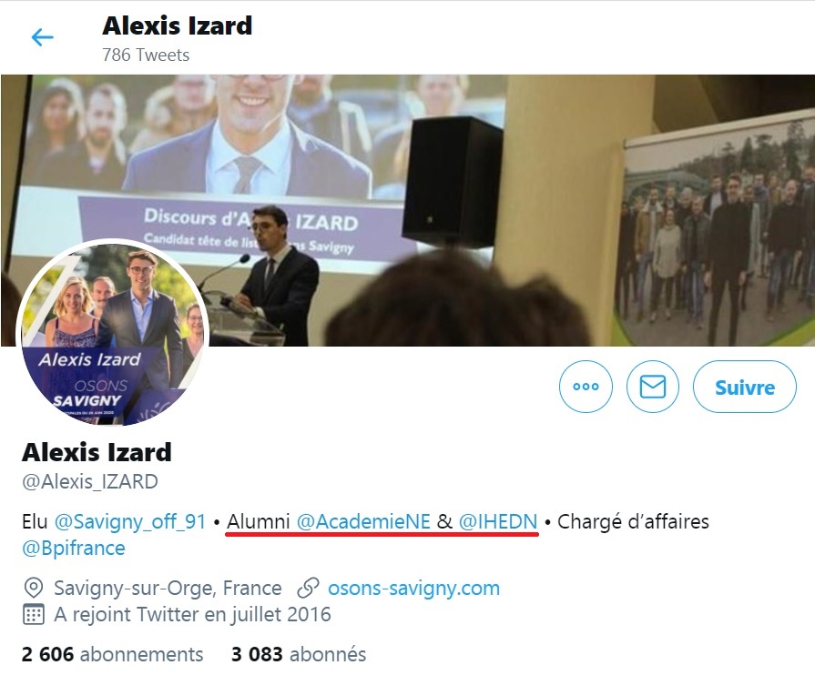 Entre Christophe-Reynald MICHEL, 28 ans, qui se présente comme « auditeur à l’IHEDN » et Alexis IZARD, 28 ans, qui est carrément « alumni » (ancien élève) de l’IHEDN ; par ailleurs d’une formation qui n’est même pas terminée…