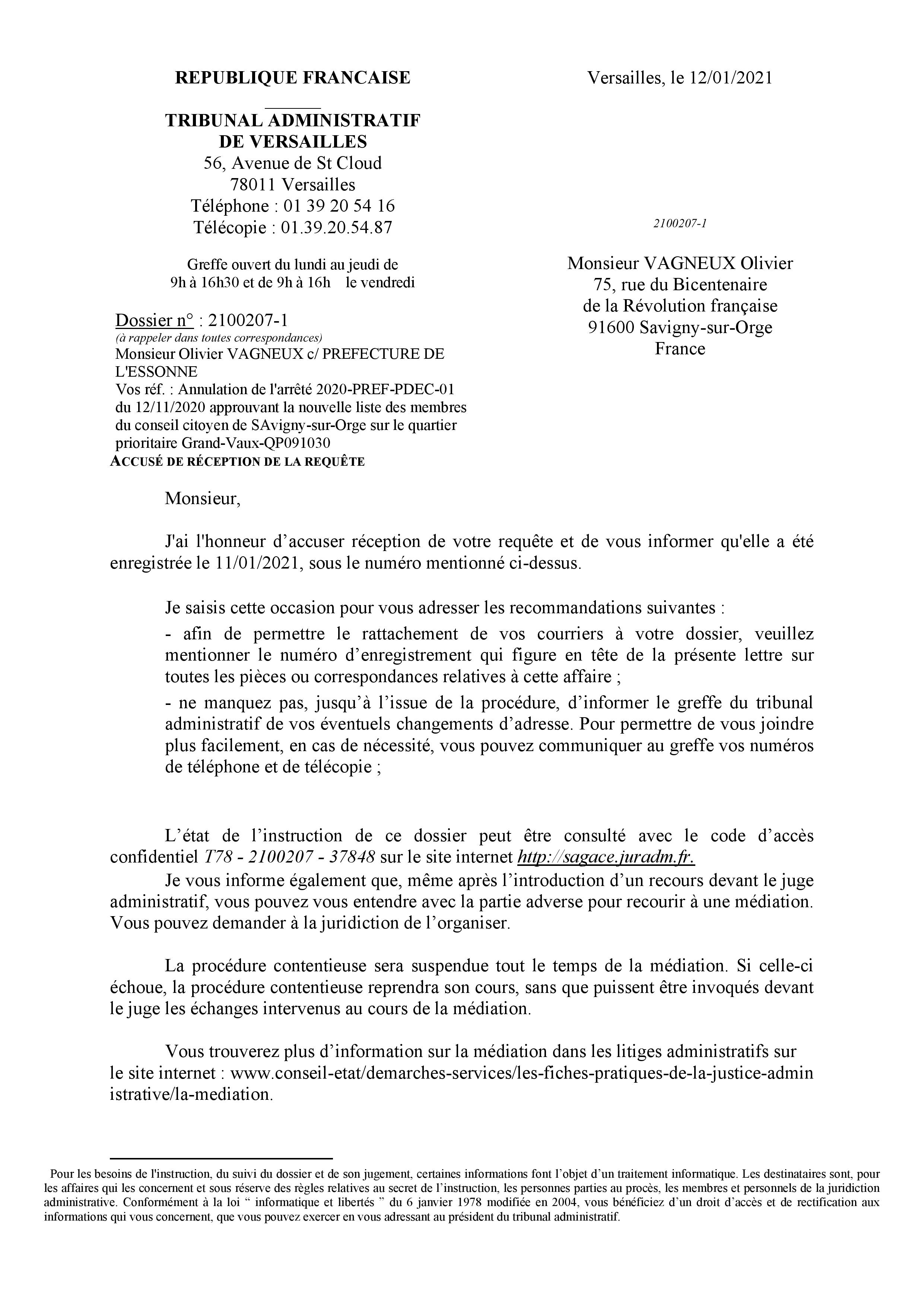 À part cela, ma requête en annulation de l’arrêté préfectoral approuvant la nouvelle liste des membres du conseil citoyen de Grand-Vaux a bien été enregistrée.