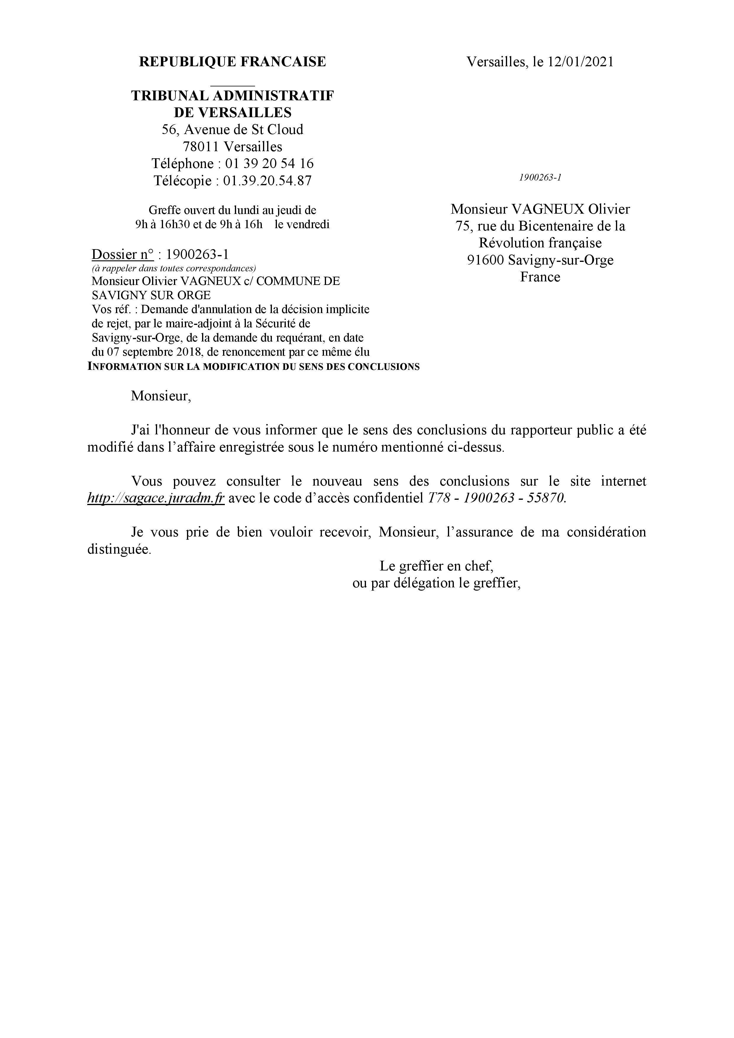 Un premier, le matin, parce que l’affaire est maintenue pour la voiture de l’adjoint au maire, mais pas pour celle du maire, pour me dire que ok, le rapporteur public soutient ma demande.