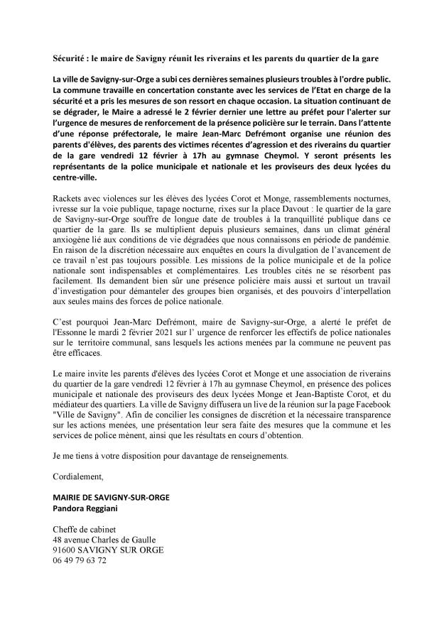 Ce vendredi 12 février 2021 à 17 heures 00 au gymnase Cheymol, la municipalité organise une réunion pour parler (in)sécurité dans le secteur de la gare et des lycées.