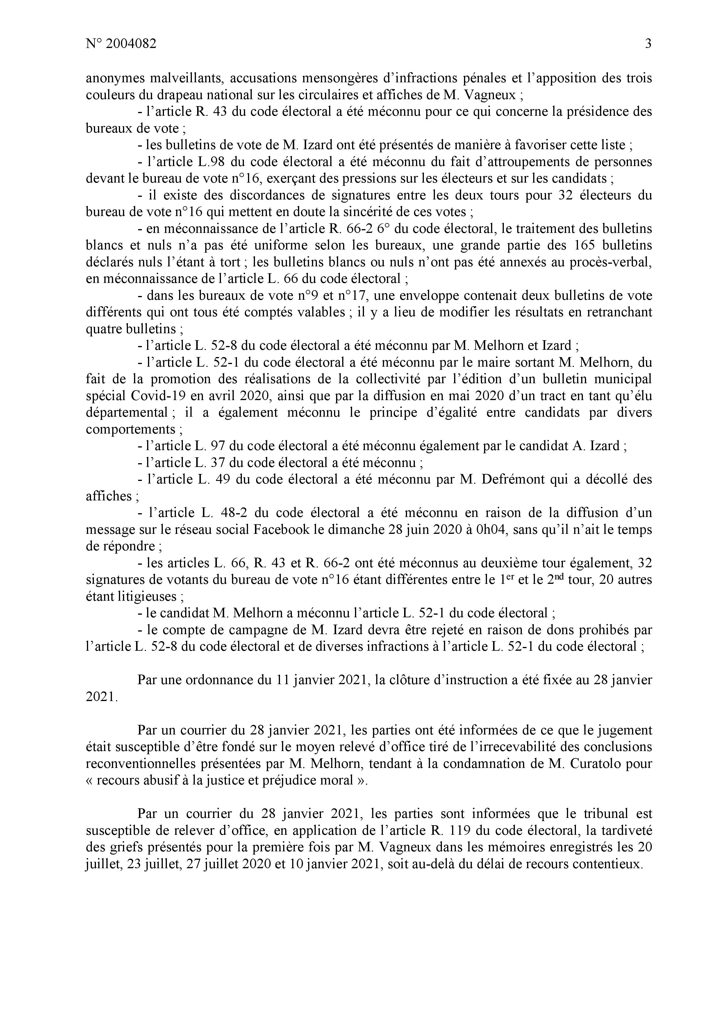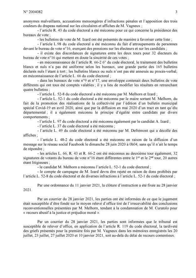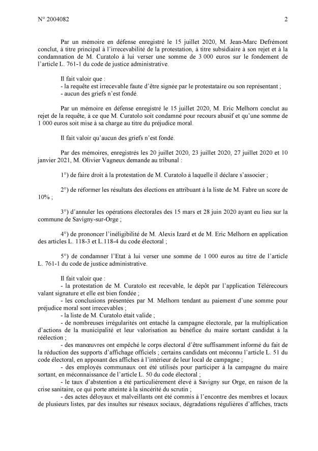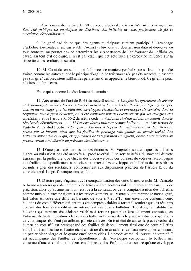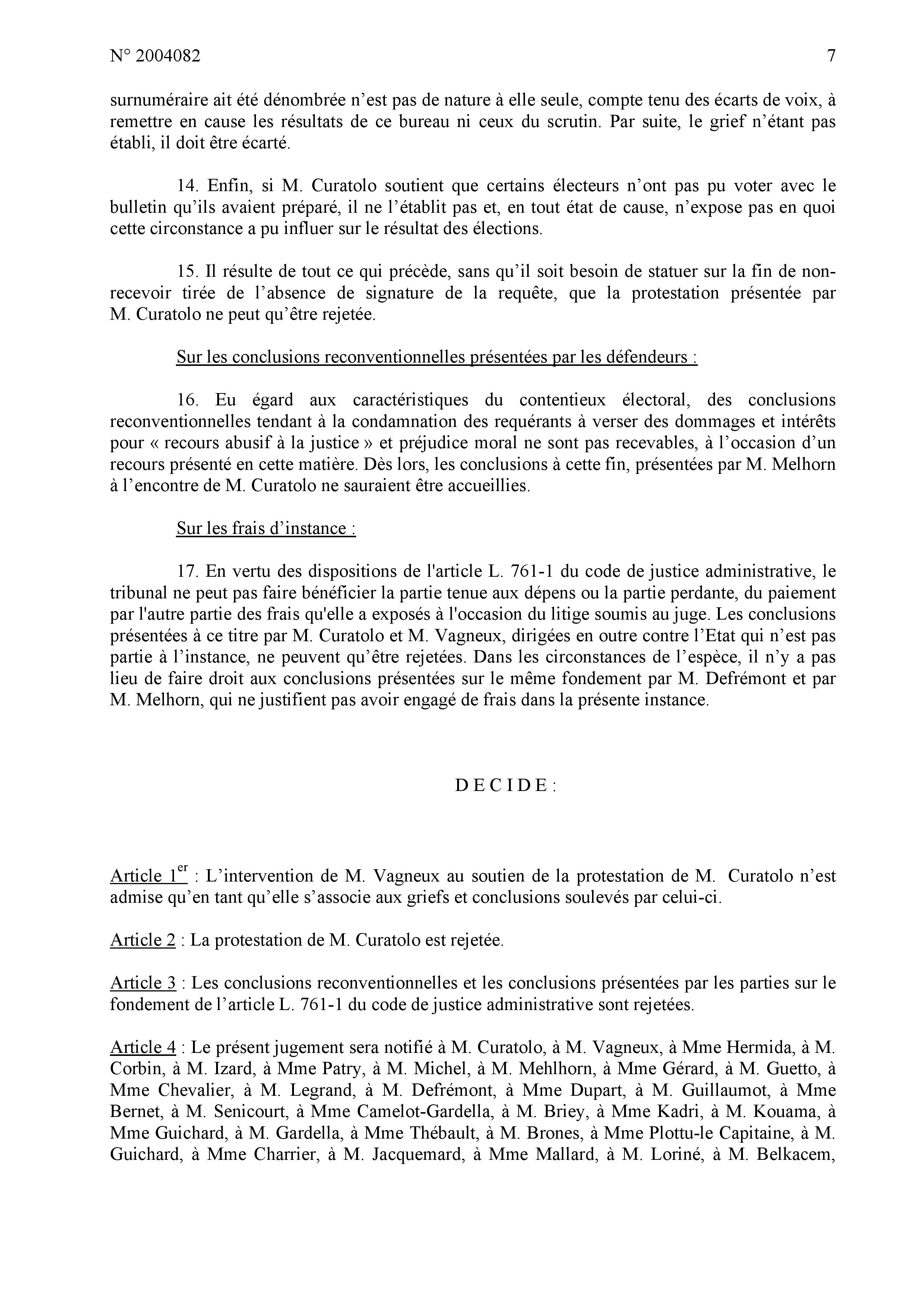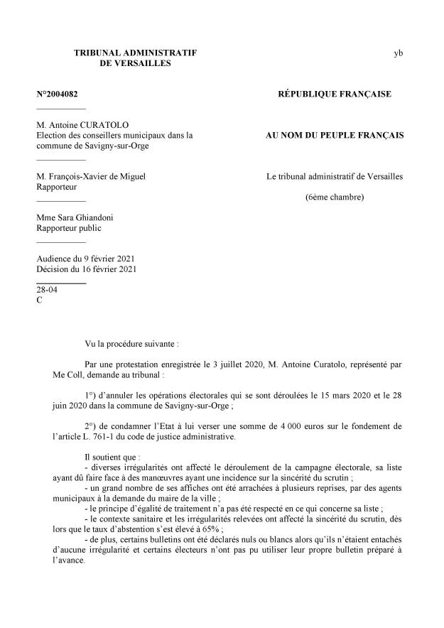 Je vous livre ici uniquement le texte du jugement de la protestation électorale d’Antoine CURATOLO, que je conteste également en appel.