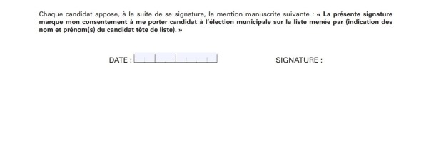 En effet, la préfecture n’a pas pu valider la liste sans observer la présence de cette mention sur le formulaire de candidature.