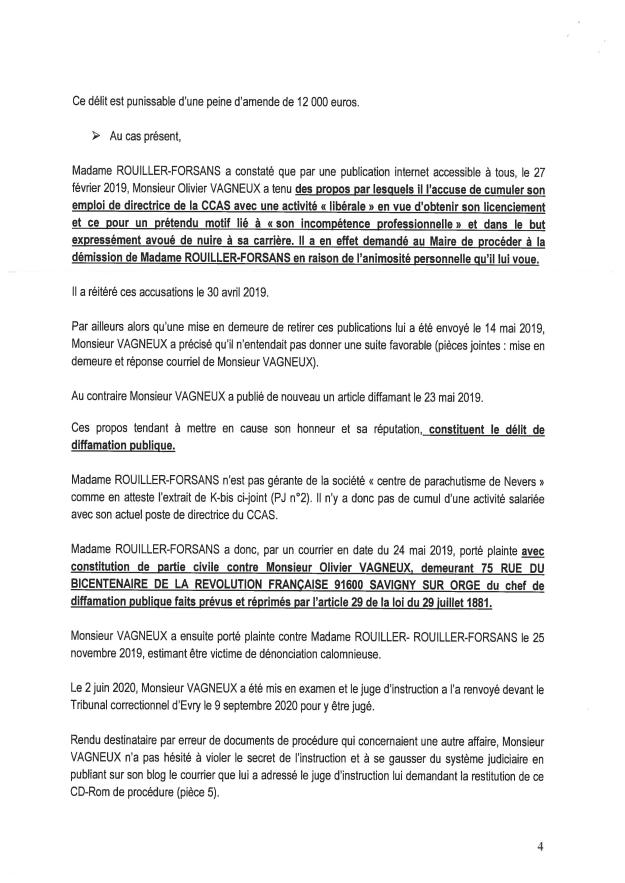 Comme beaucoup d’avocat, quand elle n’a plus rien à dire ; et effectivement elle n’apporte qu’un tout petit élément supplémentaire, par rapport à ce qu’elle avait déjà écrit il y a deux ans, elle s’en va faire le procès de mon blog. Sauf que je l’ai cassé en rappelant que la diffamation s’étudie à la date des faits et que tout ce qu’elle avance de postérieur est inopérant.