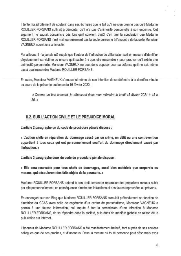 Alors je vous ai mis ses seules conclusions, mais déjà rien qu’au niveau de la plainte avec constitution de partie civile, on anticipait ce qui ferait sa faiblesse : principalement le fait qu’elle ne se relise pas et donc un coup, qu’elle oublie un mot, un autre qu’elle n’applique pas la concordance des temps, à nouveau que tel enchaînement ne soit pas logique ou cohérent avec le groupe de mots précédent… Vous allez rapidement vous en rendre compte.