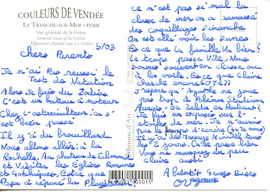 Pour l’anniversaire des 20 ans de ma classe de mer à la Savinière, le centre municipal de vacances vendéen de la Commune de Savigny-sur-Orge (1931-2015), j’ai voulu vous ouvrir mes archives personnelles de ces 13 jours (du 01er au 13 mars 2001) qui m’ont beaucoup apporté et fait grandir, et certainement plus que je ne peux réellement me rendre compte.