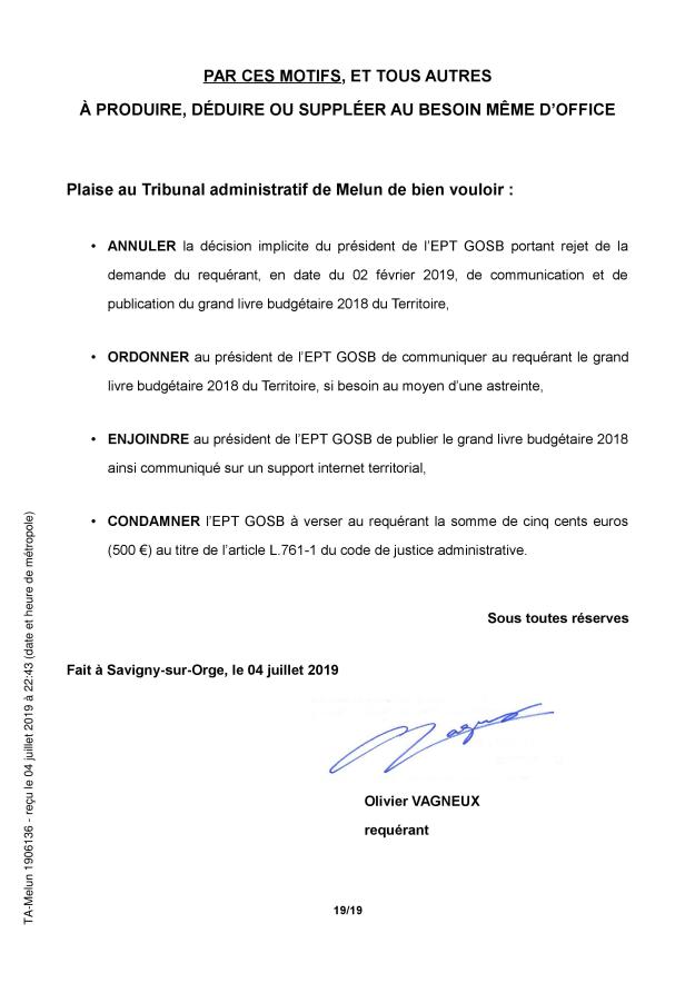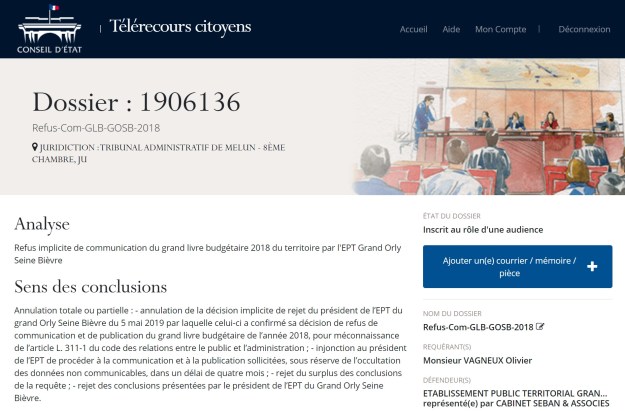 À l’heure où paraît cet article débute l’audience au Tribunal administratif de Melun à l’issue de laquelle doit être jugée ma demande de communication et de publication du grand livre budgétaire 2018 du Territoire.