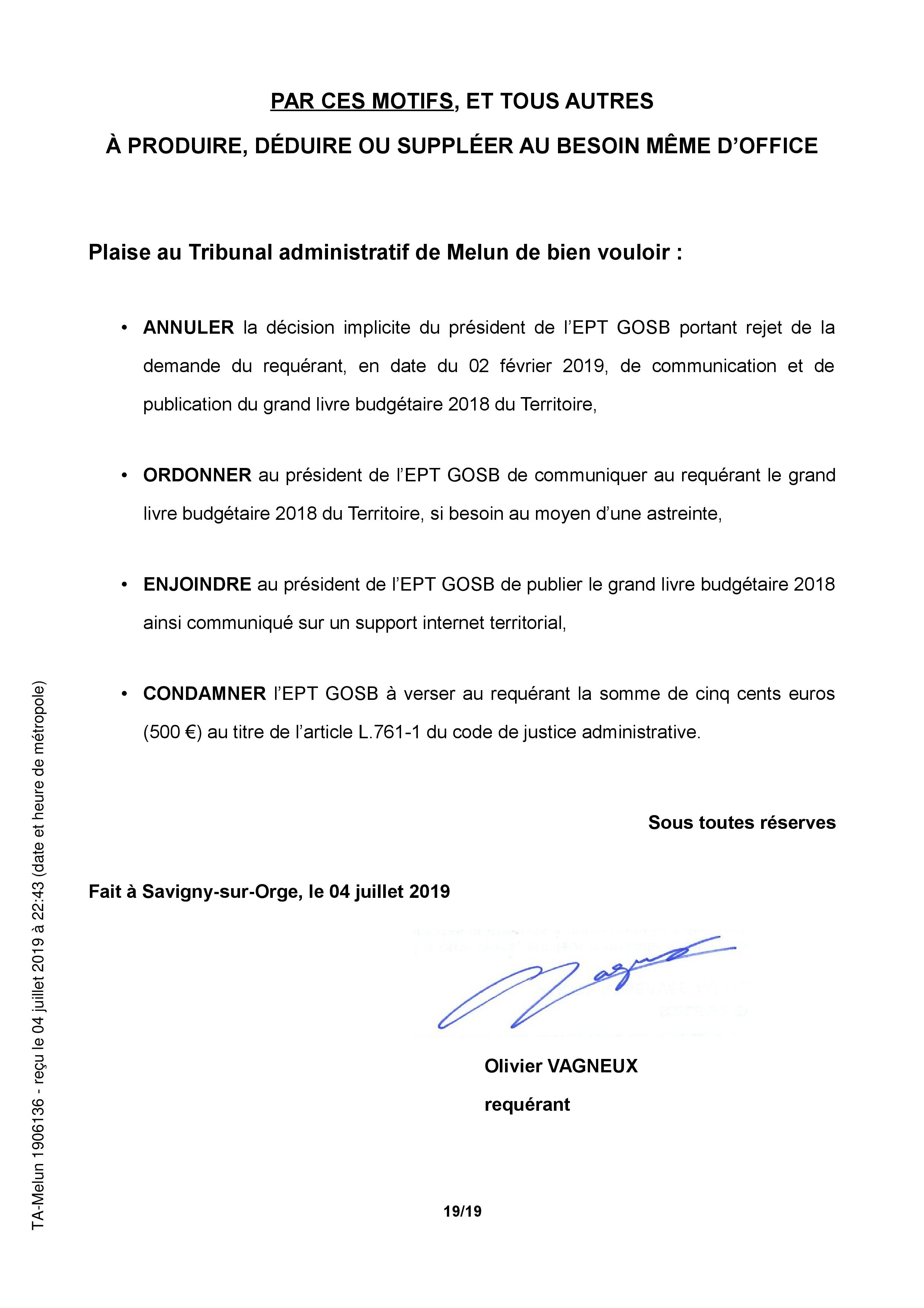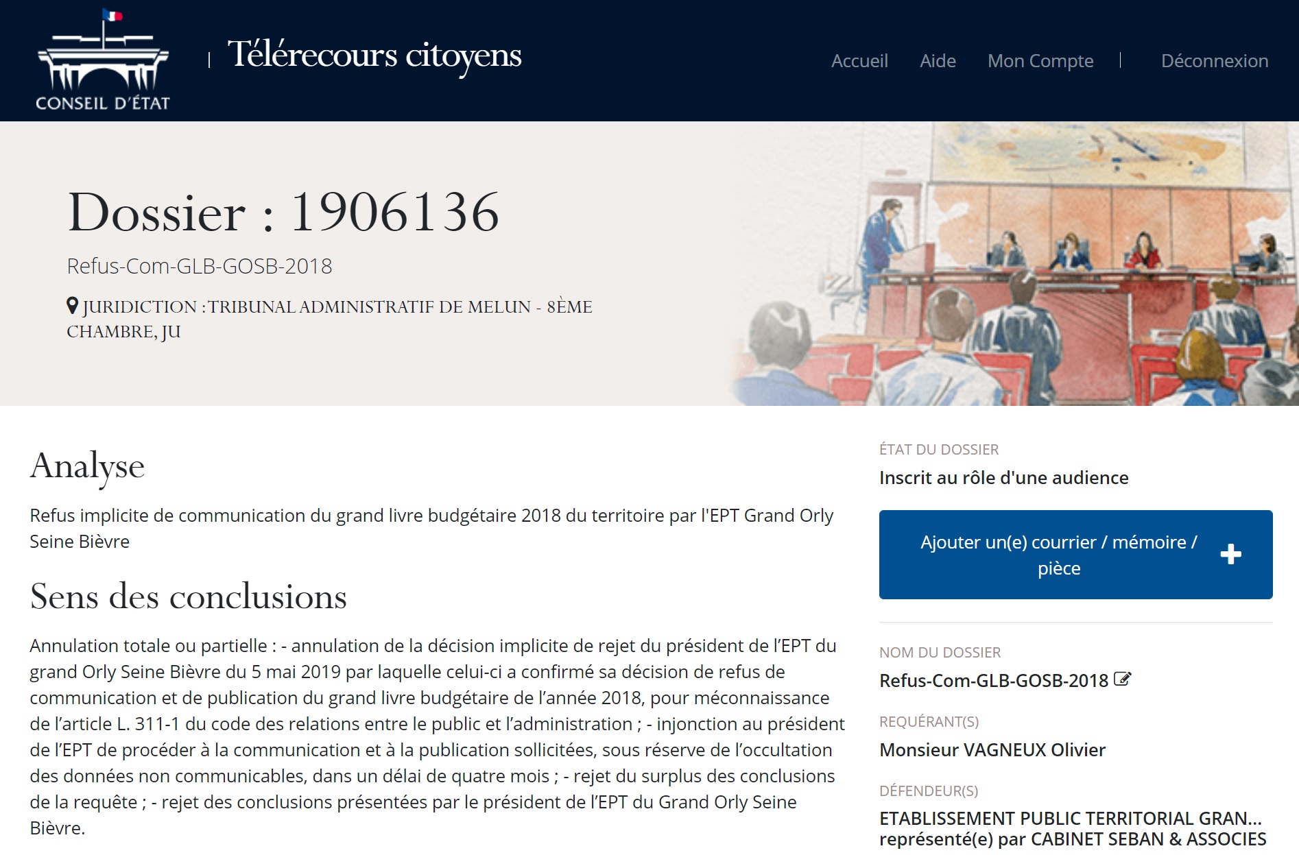À l’heure où paraît cet article débute l’audience au Tribunal administratif de Melun à l’issue de laquelle doit être jugée ma demande de communication et de publication du grand livre budgétaire 2018 du Territoire.