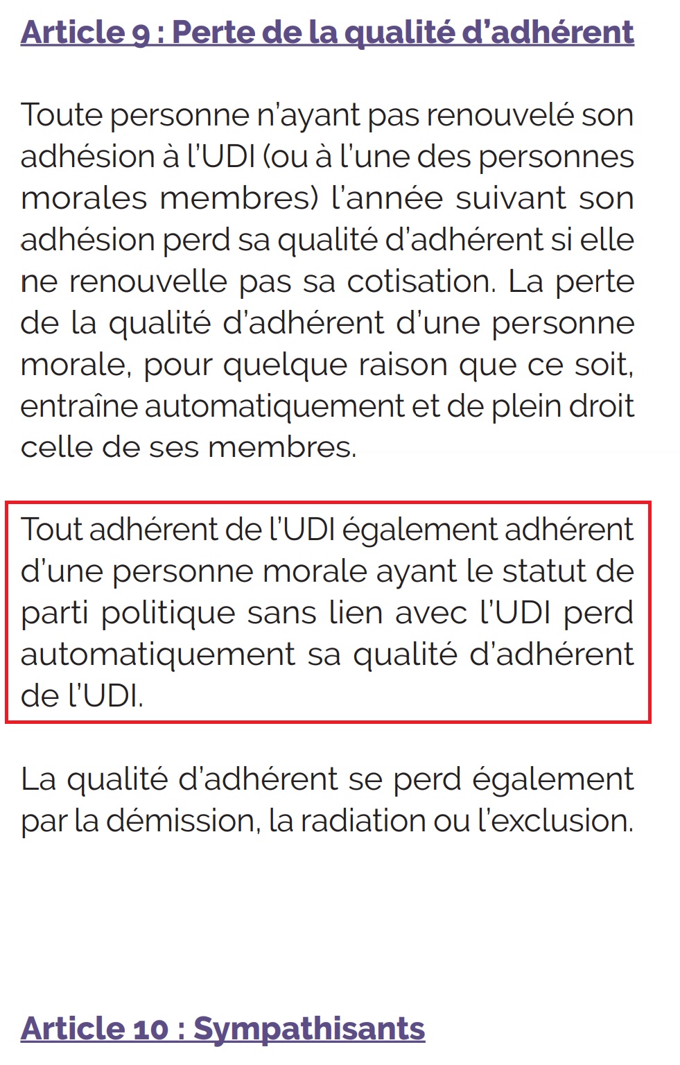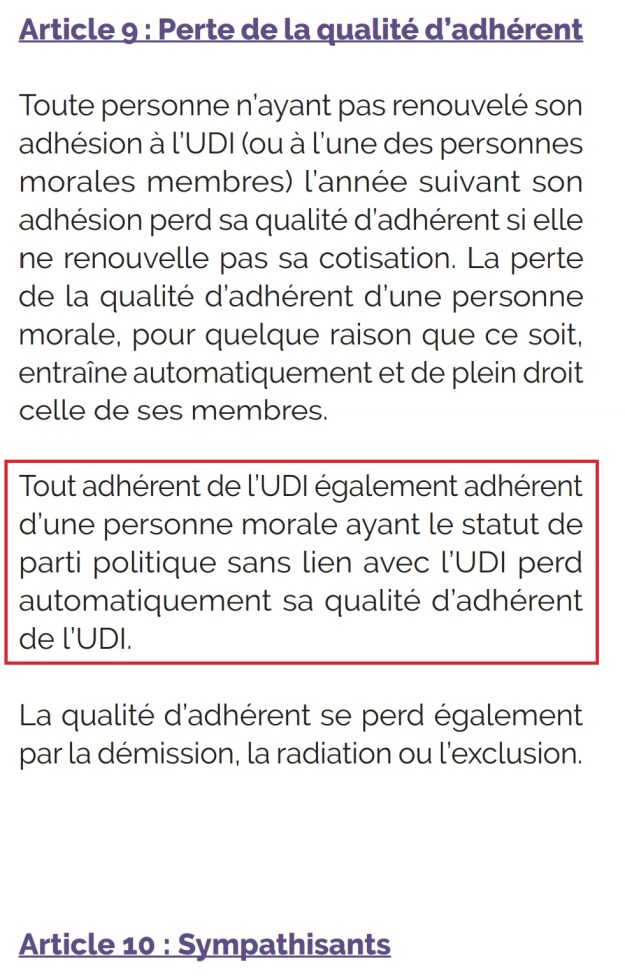 Tout simplement parce que l’article 9 des statuts de l’UDI prévoit qu’il n’est pas possible d’appartenir à deux partis.