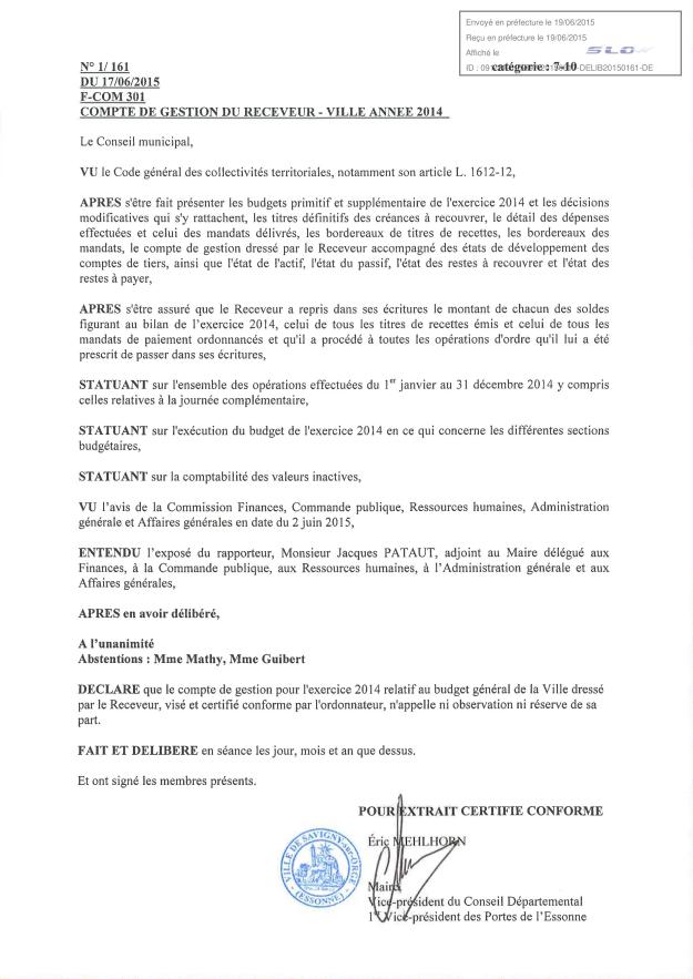 Je relève à cet endroit la critique sur mes colistiers qui n’ont pas voulu donner quitus au receveur pour sa gestion.