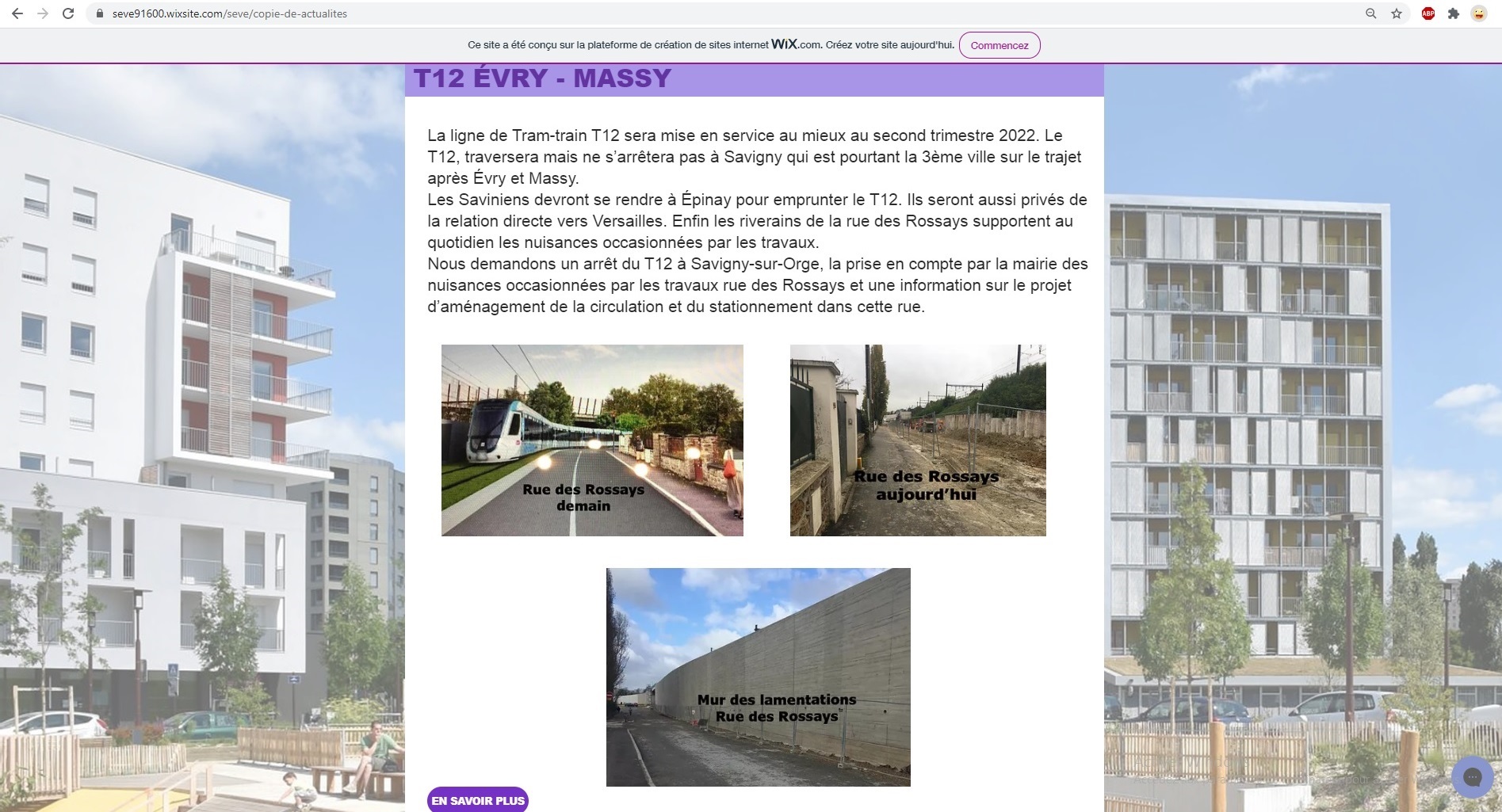 Je repense également, puisque SEVE dénonce les désagréments des travaux du T12 pour les riverains de la rue des Rossays ; alors même que la grosse arnaque est qu’on avait promis à ces mêmes riverains que le T12 ne serait pas dans la rue mais au niveau des voies de chemin de fer, que quand, avec des Spinoliens, ils ont eu besoin d’aide et d’informations en vue d’un recours (auquel ils ont finalement renoncé), c’est Bernard MÉRIGOT et moi qu’ils sont venus trouver ! Et même pas Élan, qu’ils ont quand même contacté, mais qui les a ignorés.