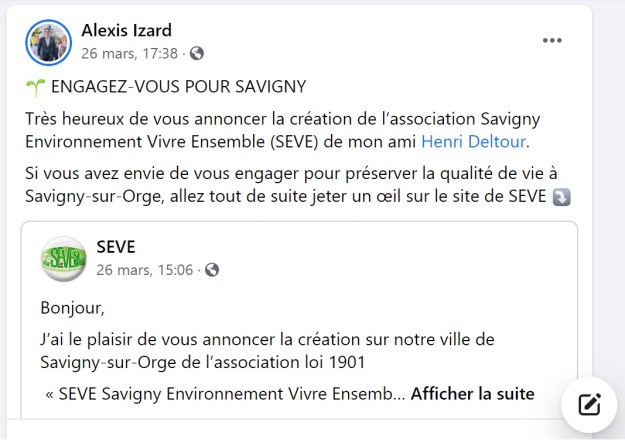 Pendant ce temps, la défense du cadre de vie n’avancera pas ; en tout cas pas en écrivant autant de bêtises, et pire, les Saviniens croiront alors qu’ils sont défendus, par des gens, qui encore une fois, sont déjà dépassés sur la moitié des grands sujets, typiquement le RER !