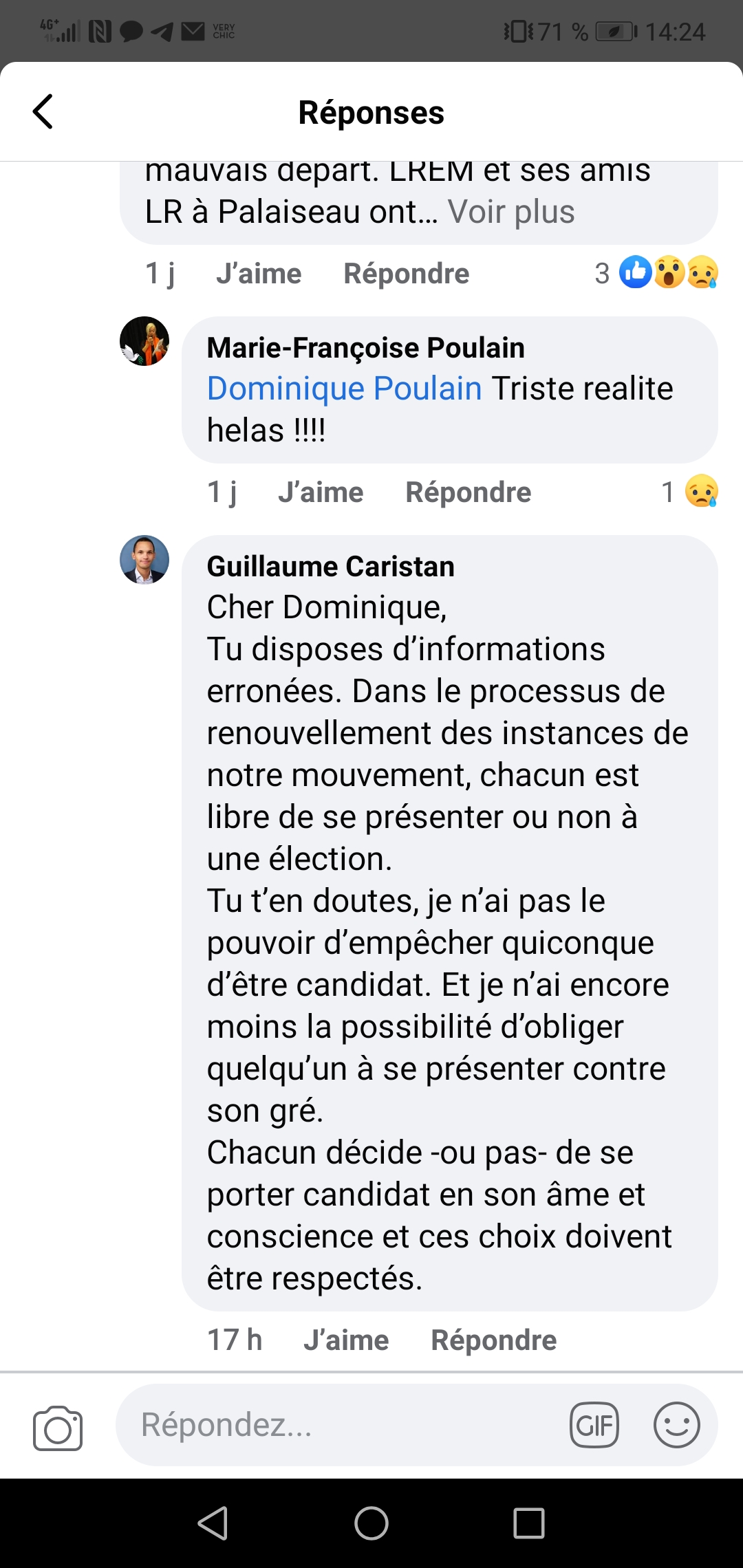 Dans tous les cas, je trouve le comportement de Guillaume CARISTAN profondément lâche et antipathique.