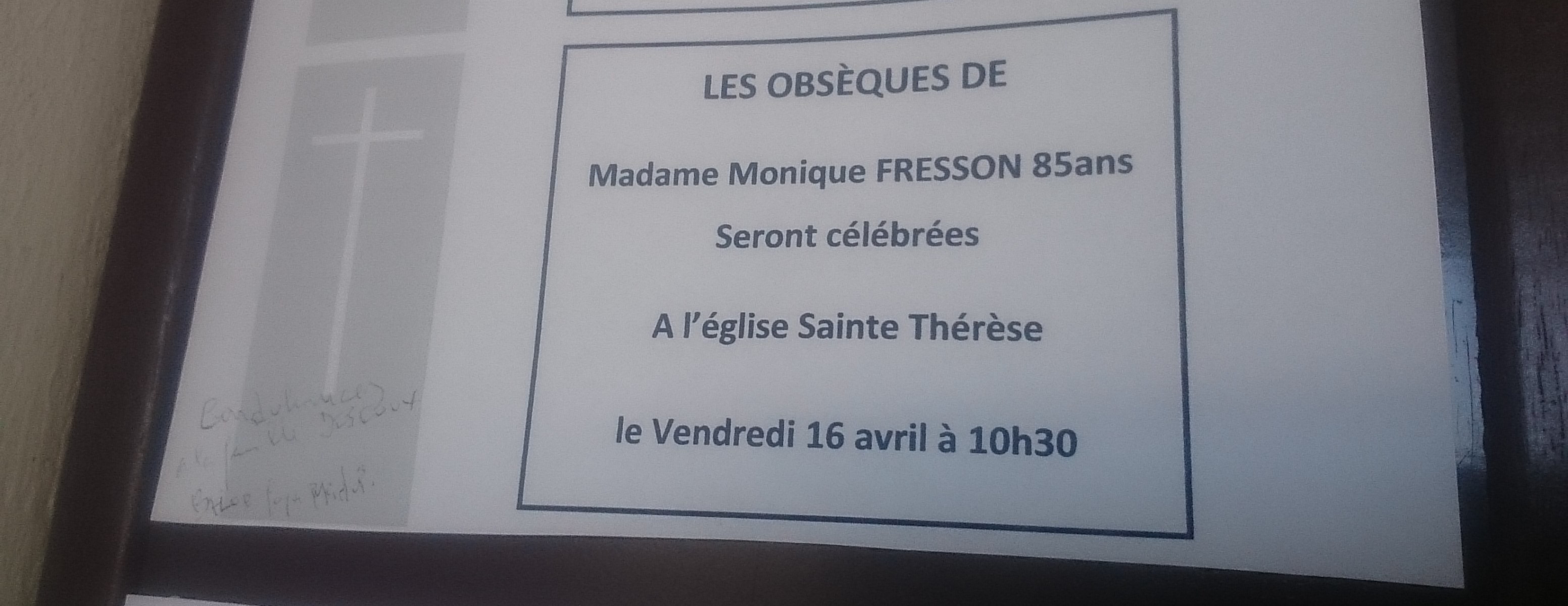 Les obsèques de Monique seront célébrées ce vendredi 16 avril 2021 à 10 h 30 en l’église sainte Thérèse de Savigny-sur-Orge.
