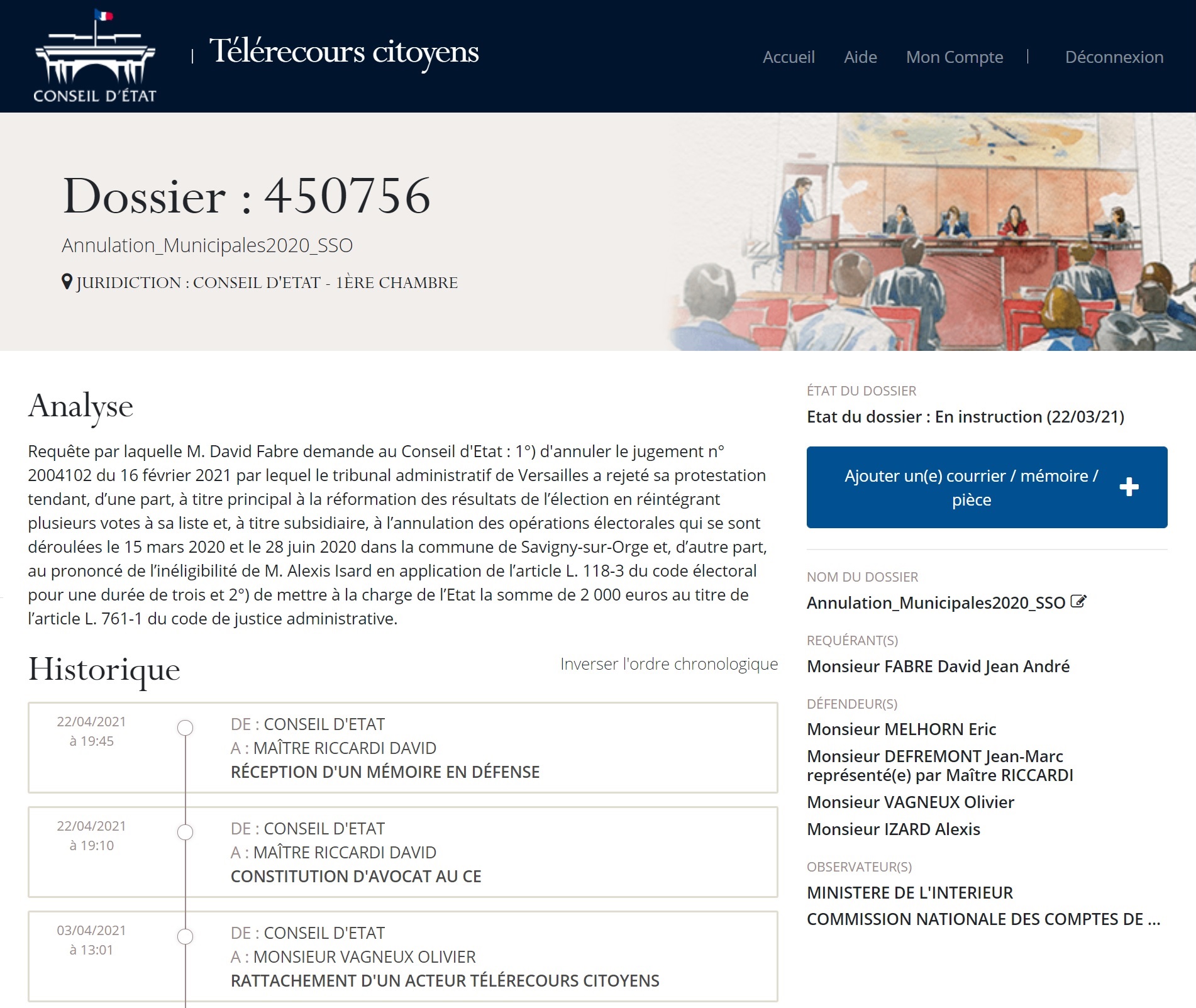 Donc il faut relever que si Jean-Marc n’avait pas pris d’avocat en première instance, il en a pris un pour l’appel ; comme quoi, il ne doit pas être super tranquille. Pour autant, il ne prend pas un avocat aux Conseils, mais seulement l’avocat de ses copains, lequel est également conseiller municipal PS de Chilly-Mazarin. Après sincèrement, face aux éléments nouveaux de preuves qu’on apporte avec FABRE, il peut prendre qui il veut que cela ne changera plus rien !