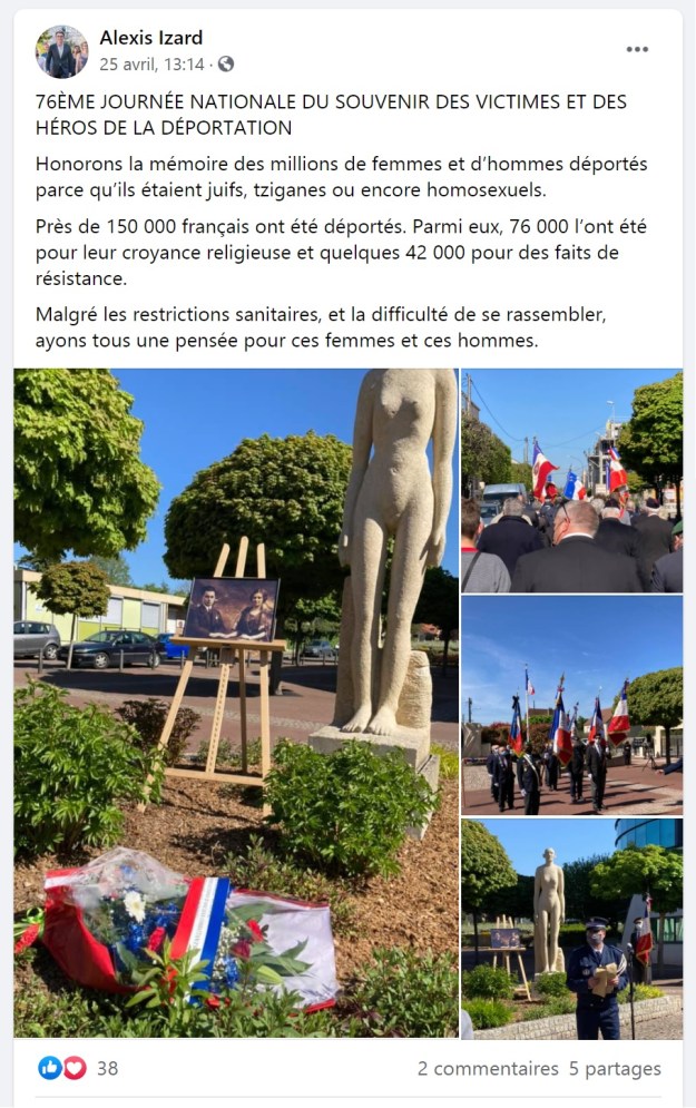 Finalement, je comprends mieux pourquoi Alexis IZARD ne percute toujours pas le danger qu’il a, à promettre tout et n’importe quoi à des salafistes, dans la mesure où il semble s’imaginer que les 76 000 juifs qui ont été déportés en France, et qu’il croît d’ailleurs tous français, alors que 55 000 des juifs déportés depuis la France étaient étrangers ou apatrides mais ce n’est pas ici l’objet du débat, l’ont été pour leur « croyance religieuse ».