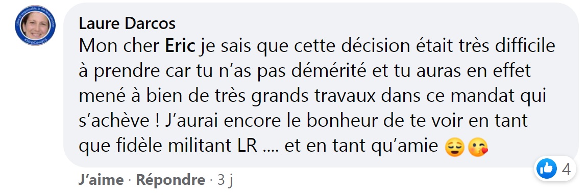 #3 Laure DARCOS, présidente départementale de LR, qui voulait bien de MEHLHORN s’il démissionne en cours de mandat pour laisser sa place à IZARD. Elle s’imagine que MEHLHORN va rester militer chez LR, et le pire est qu’elle a peut être raison !