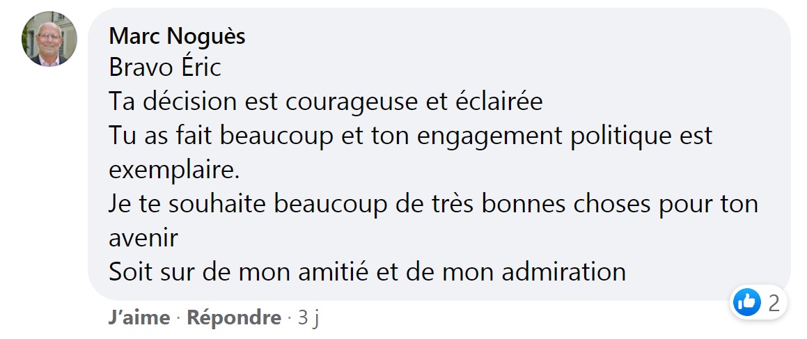 Pour mémoire, je rappelle que la commission départementale d’investiture de LR a écarté la candidature d’Éric MEHLHORN pour les prochaines élections départementales.