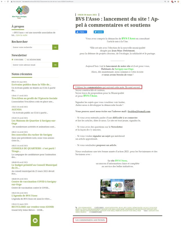 C’est vrai que ce n’est pas comme si Jean-François DUMOUSSEAUX était déjà le webmestre du site de la section socialiste de Savigny-sur-Orge et du site de politique locale « Mieux vivre à Savigny-sur-Orge ». Il y aurait donc une cohérence à ce qu’il soit aussi le webmestre de « Bien vivre à Savigny, l’association ».