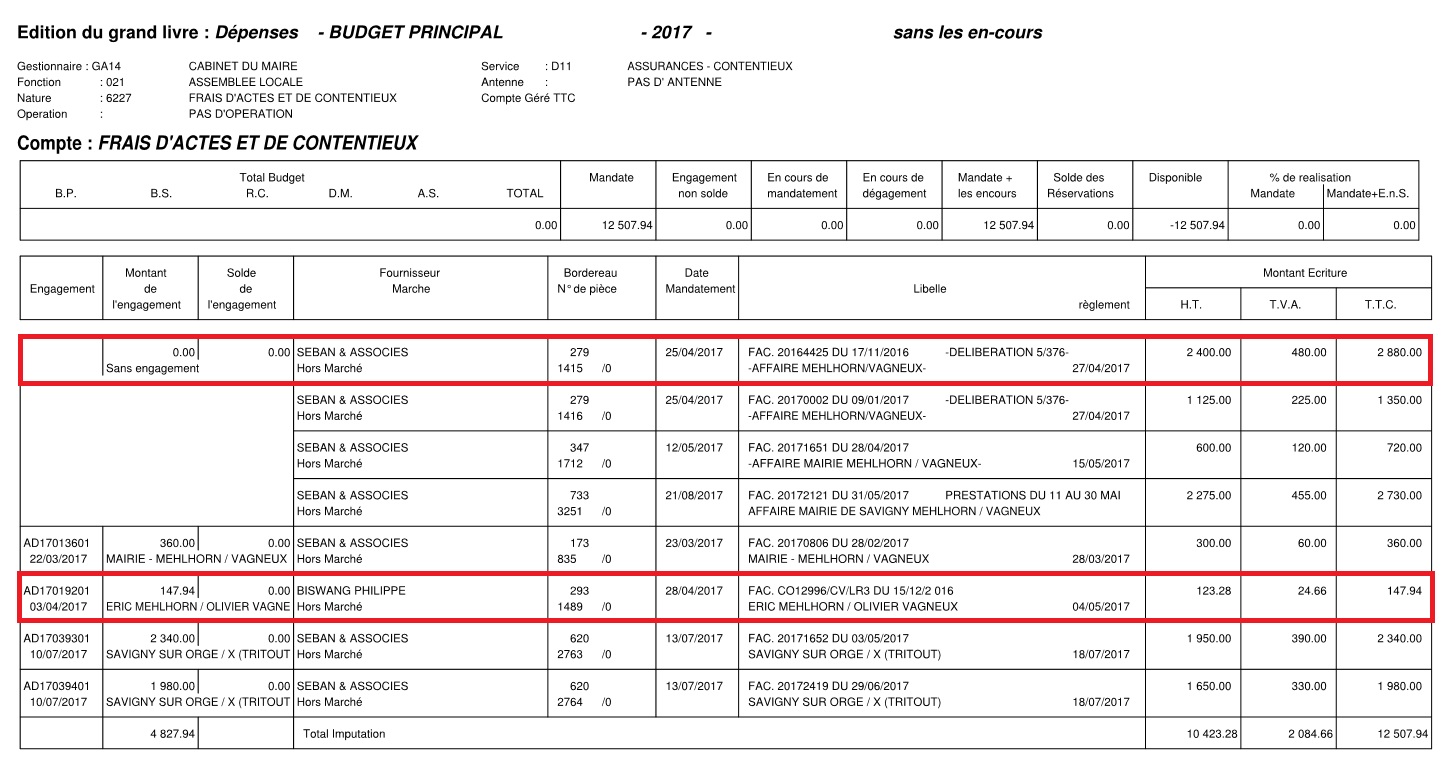 Le fait est que cette première délibération a financé entre deux et trois factures, qui soit n’avaient pas à être prises en charge par la Commune, soit l’ont indûment été de manière anticipée, donc rétroactive, donc illégale ! Et si on va par là, MEHLHORN dépensait plusieurs meilleurs d’euros chaque année en frais de justice qui n’étaient absolument pas autorisés puisque couverts par un acte juridique. Il sera poursuivi pour cela en son temps.