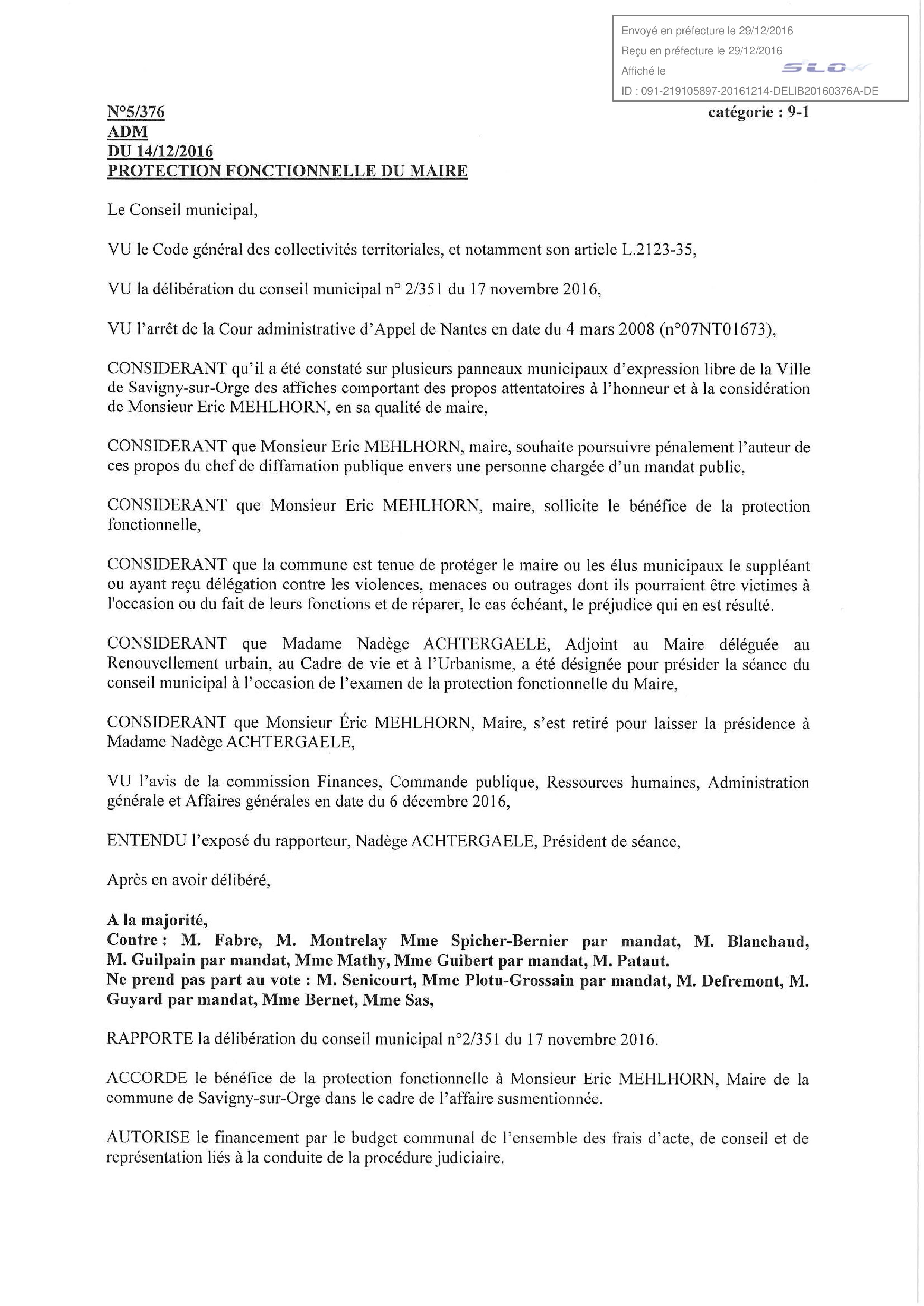 Sauf que je n’attaque pas MEHLHORN parce qu’il a sollicité le bénéfice de la protection fonctionnelle, mais parce qu’il se l’est voté pour lui personnellement !