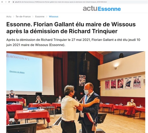 Or, le fait est que la dernière élection à Wissous s’est jouée à quelques voix, et que le challenger, Philippe DE FRUYT, qui a fini avec plus de 49 % des voix soutient le binôme Isabelle FERREIRO et Xavier DUGOIN. Donc jusqu’à présent, VERMILLET et TEILLET manquaient d’un soutien de poids. C’est chose faite avec le nouveau maire de Wissous qui les remplace…