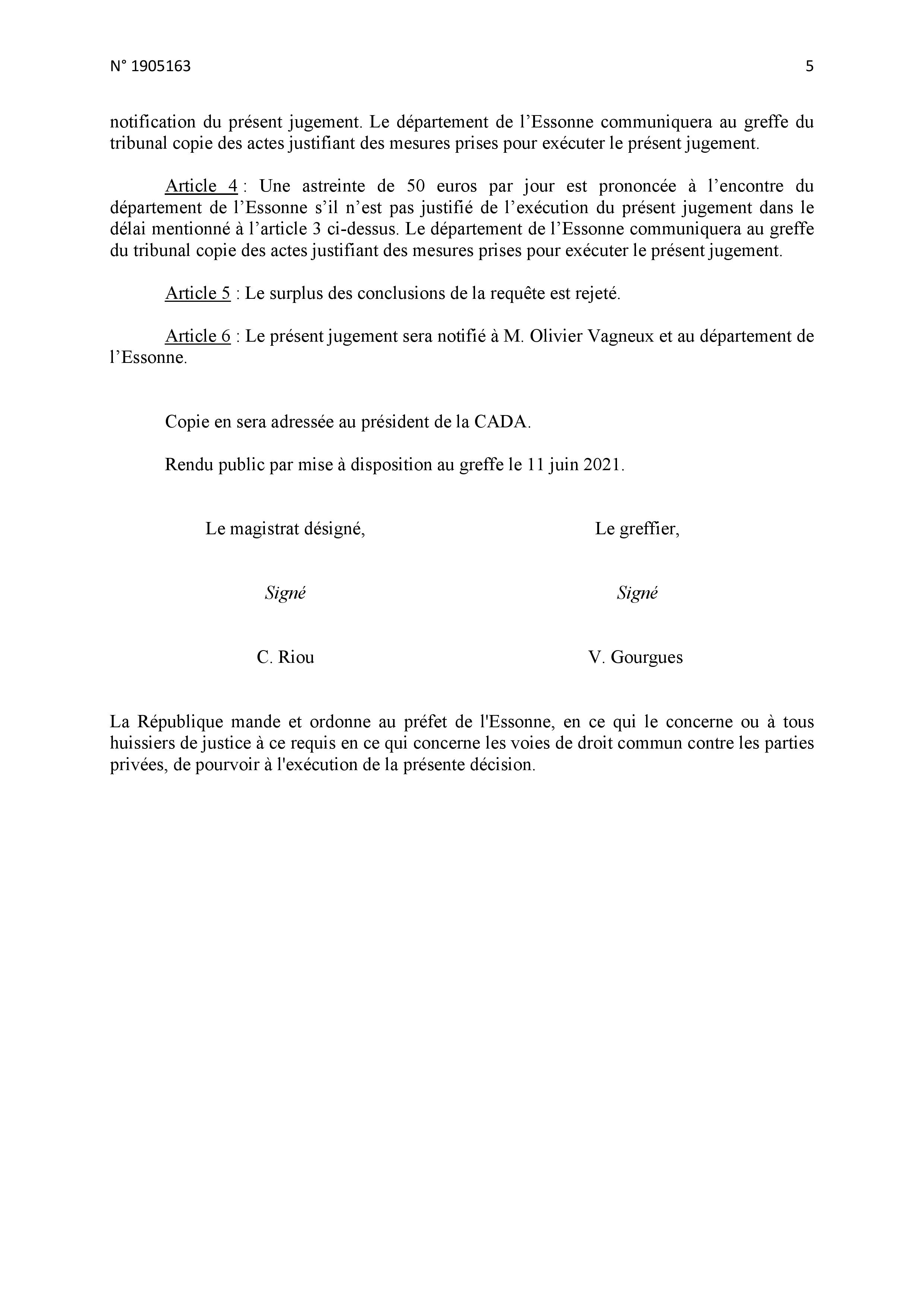 Mais en plus, elle lui a rajouté une astreinte de 50 euros par jour de retard pour le forcer à s’exécuter… Nul doute que DUROVRAY se pourvoira également en cassation, mais attention à la douloureuse à la fin car le Conseil d’État statuera en plus de 4 mois.