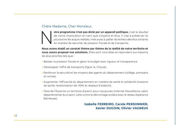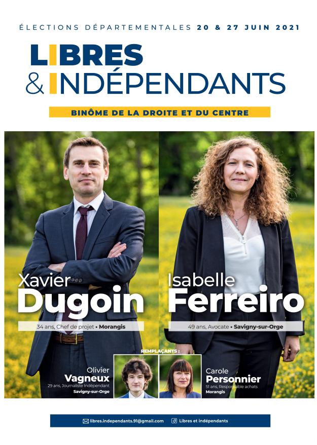 Binôme soutenu par Olivier VAGNEUX (Savigny), Carole PERSONNIER (Morangis), Philippe DE FRUYT (Wissous), Daniel TREHIN (ancien maire de Morangis) et David FABRE (Savigny).
