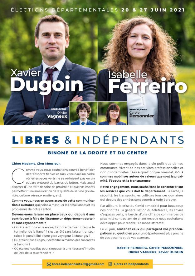 Les 20 et 27 juin 2021, je vote Isabelle FERREIRO et Xavier DUGOIN.