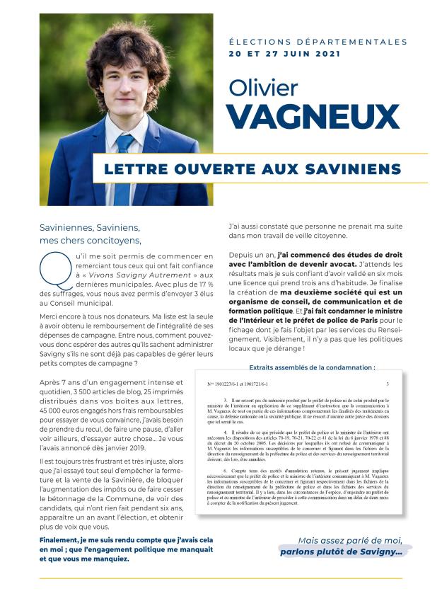 La lettre ouverte d’Olivier VAGNEUX aux Saviniens