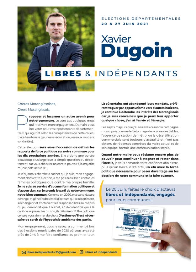 Le tract de mobilisation de Xavier DUGOIN à Morangis
