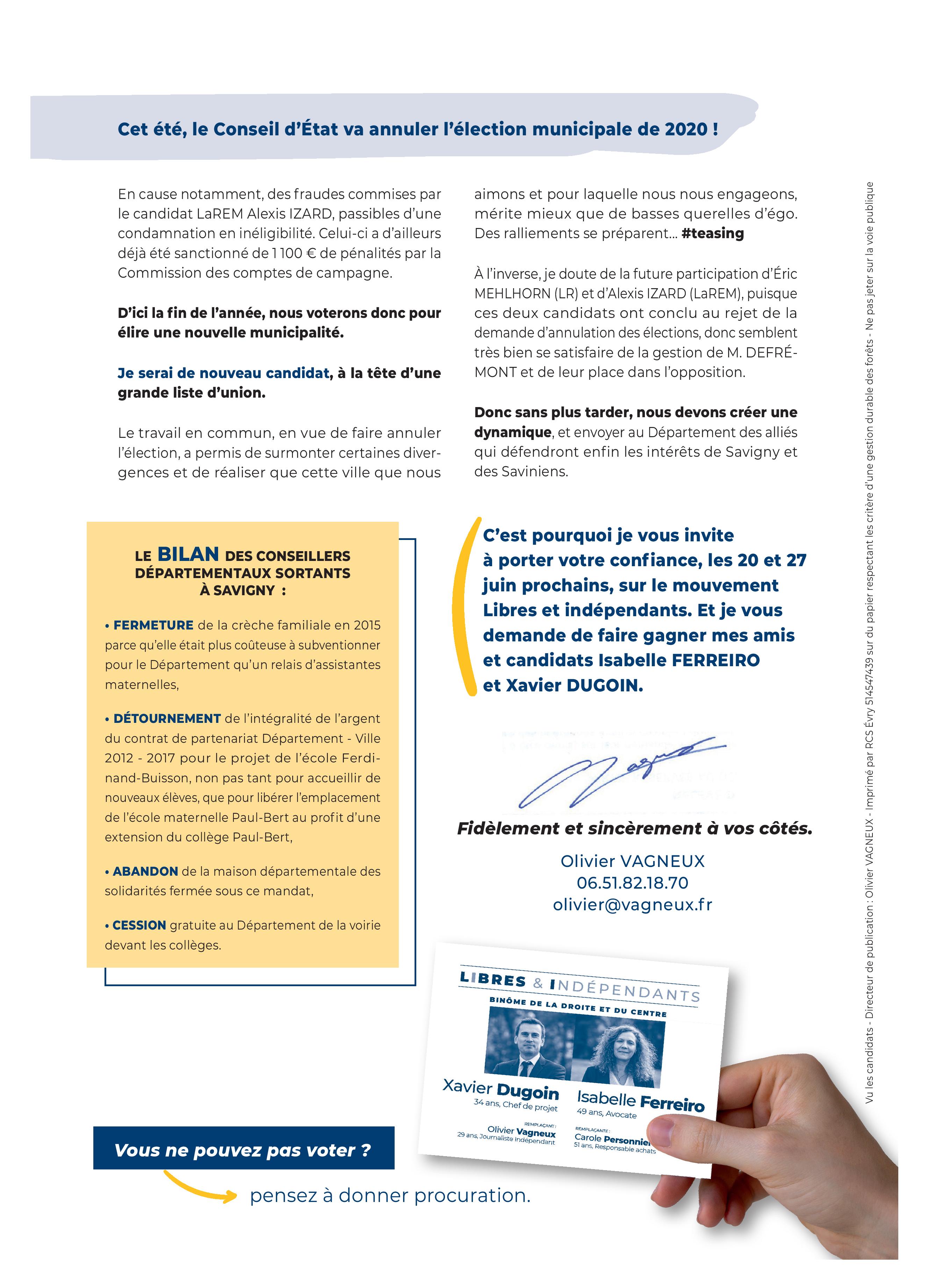 La lettre ouverte d’Olivier VAGNEUX aux Saviniens