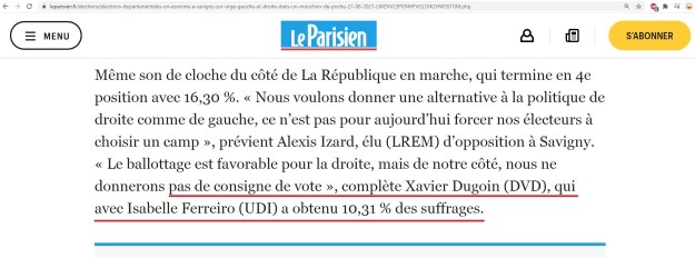 Départementales 2021 à Savigny-sur-Orge : Isabelle FERREIRO et Xavier DUGOIN ne donnent pas de consigne de vote pour le second tour