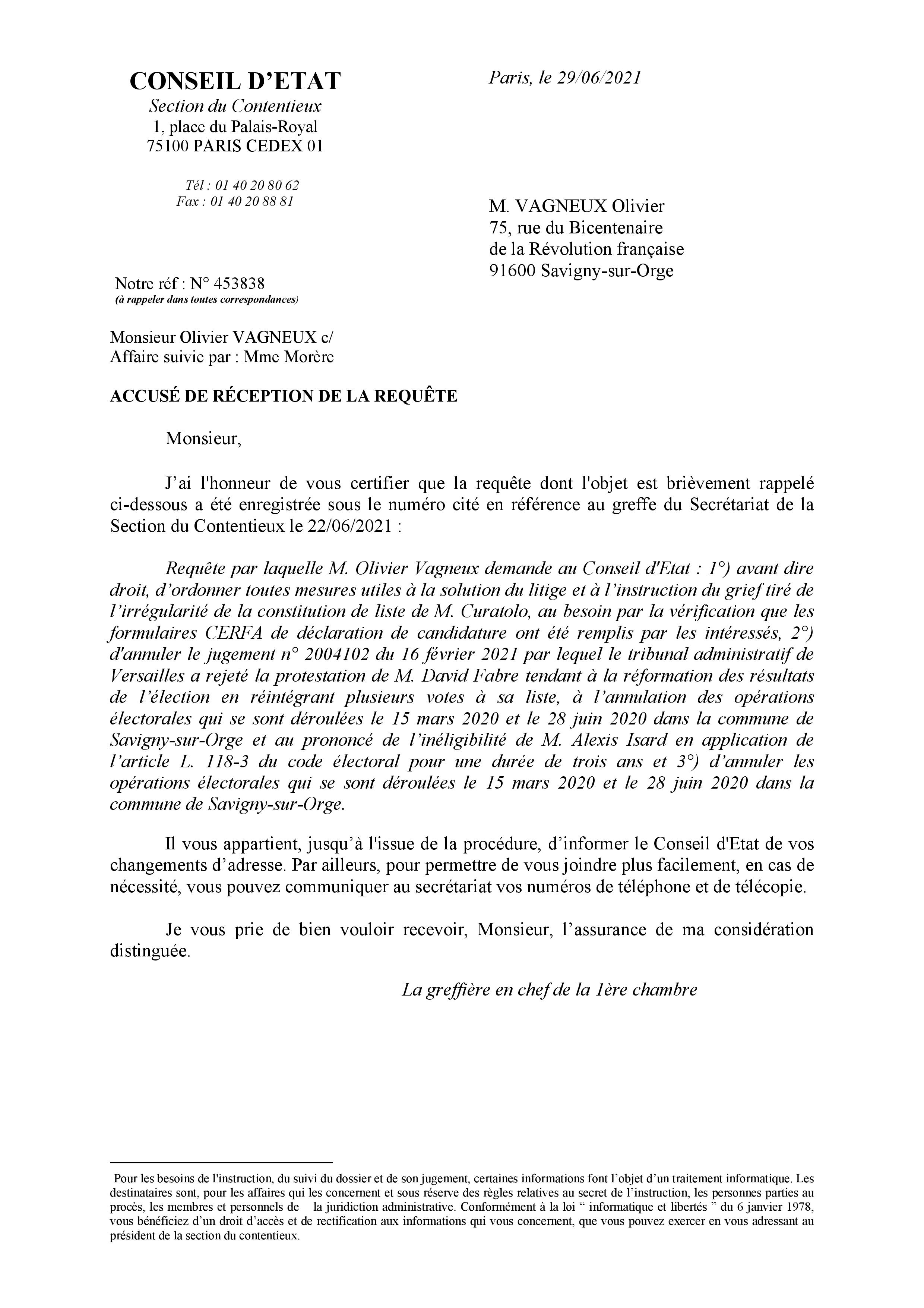 À suivre maintenant ; j’attends désormais l’accusé de réception de ma deuxième requête, déposée symboliquement ce 28 juin 2021, un an jour pour jour après les élections…