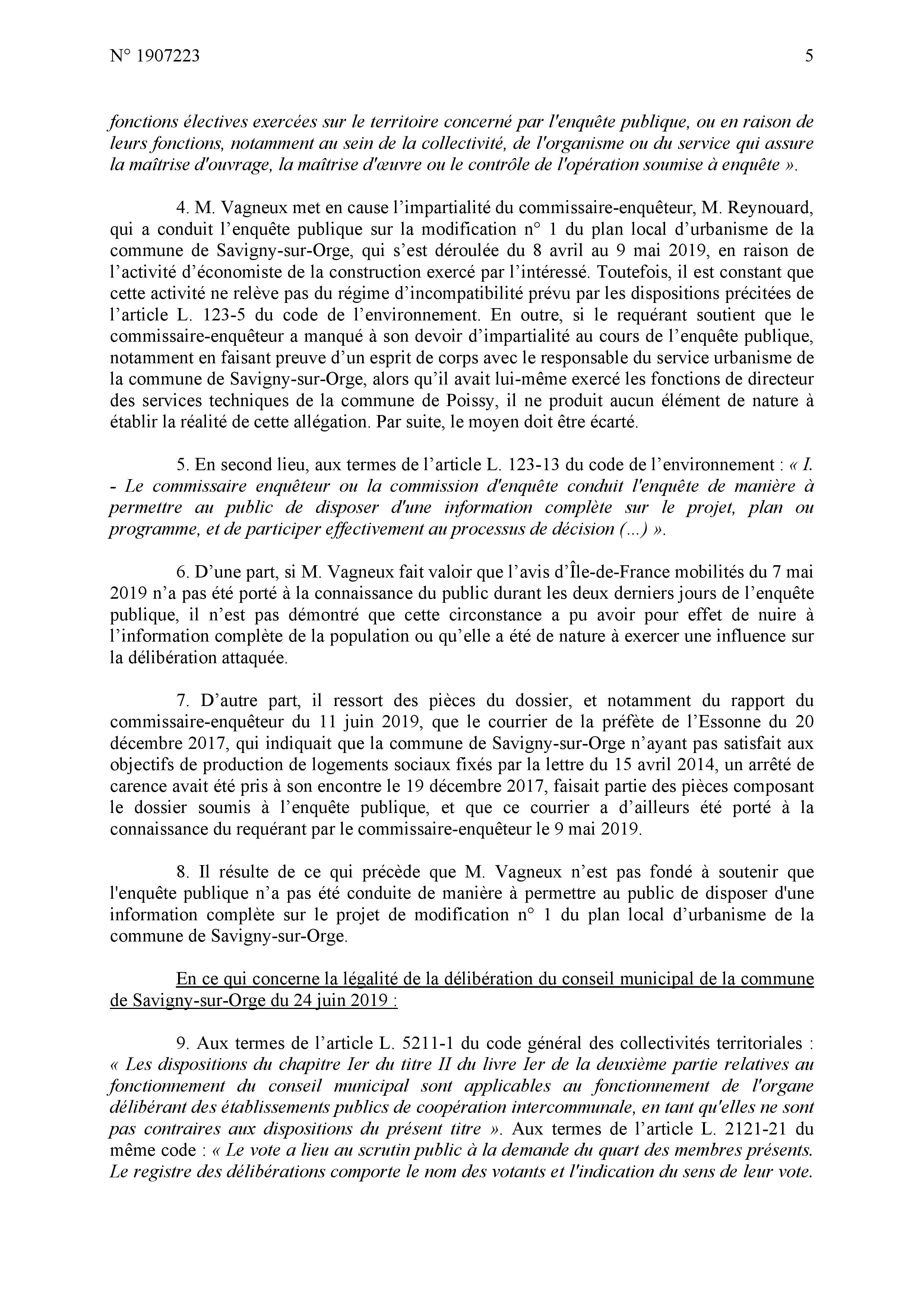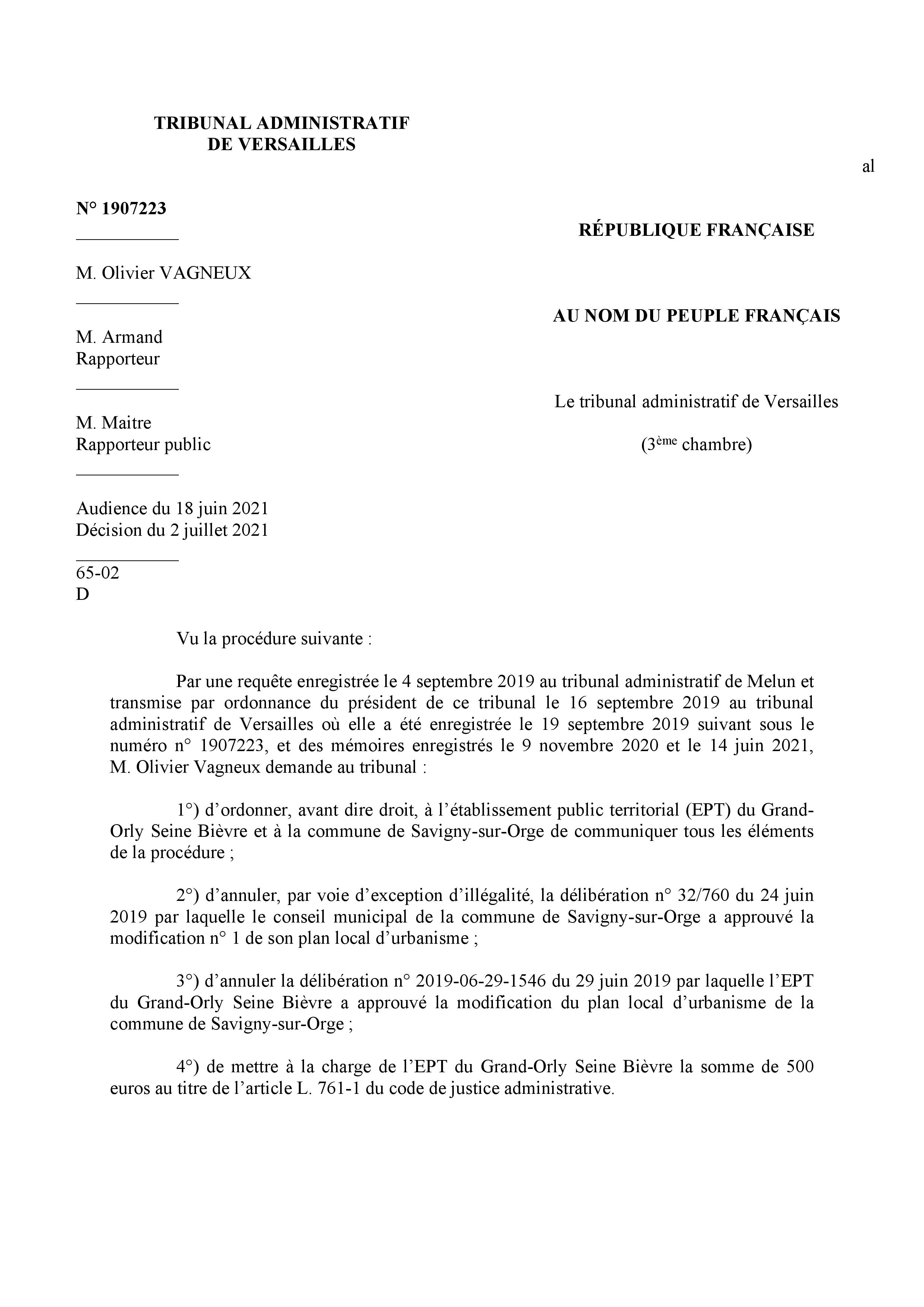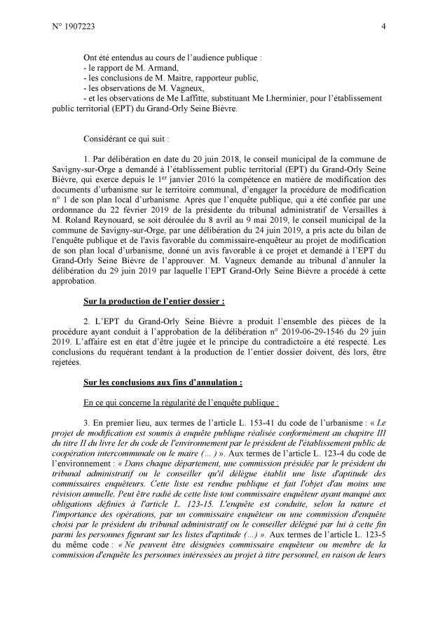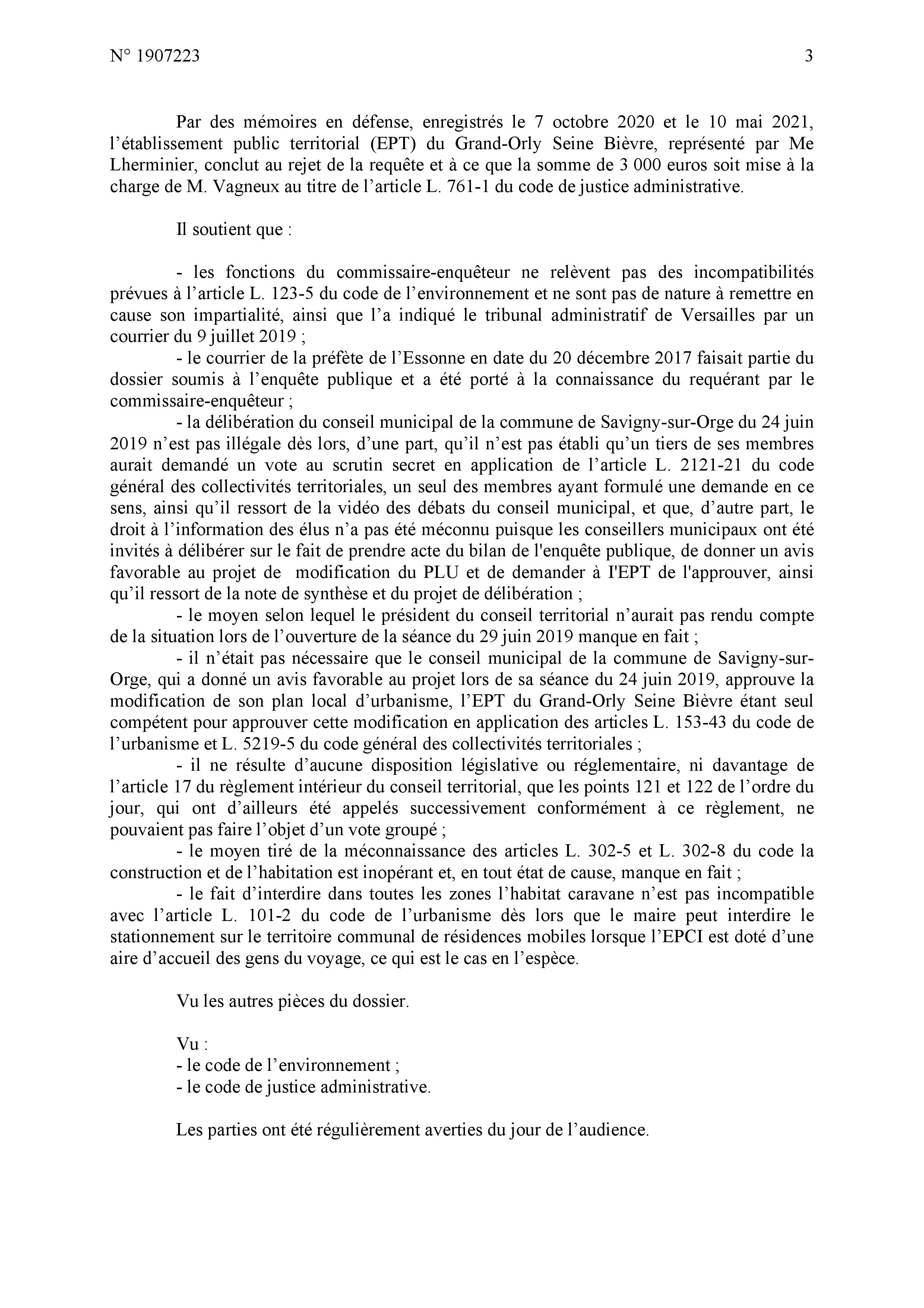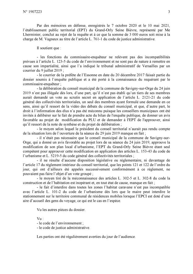 Le jugement est relativement complet ; je maintiens néanmoins le vice de procédure au niveau de l’approbation de la délibération savinienne quand MEHLHORN avait dit que ce n’était qu’un donner acte alors que c’était bien un vote d’acceptation, et par conséquent le vice de procédure au niveau de la délibération intercommunale en tant que l’EPT s’est fixé pour règle de toujours respecter le vote des communes.