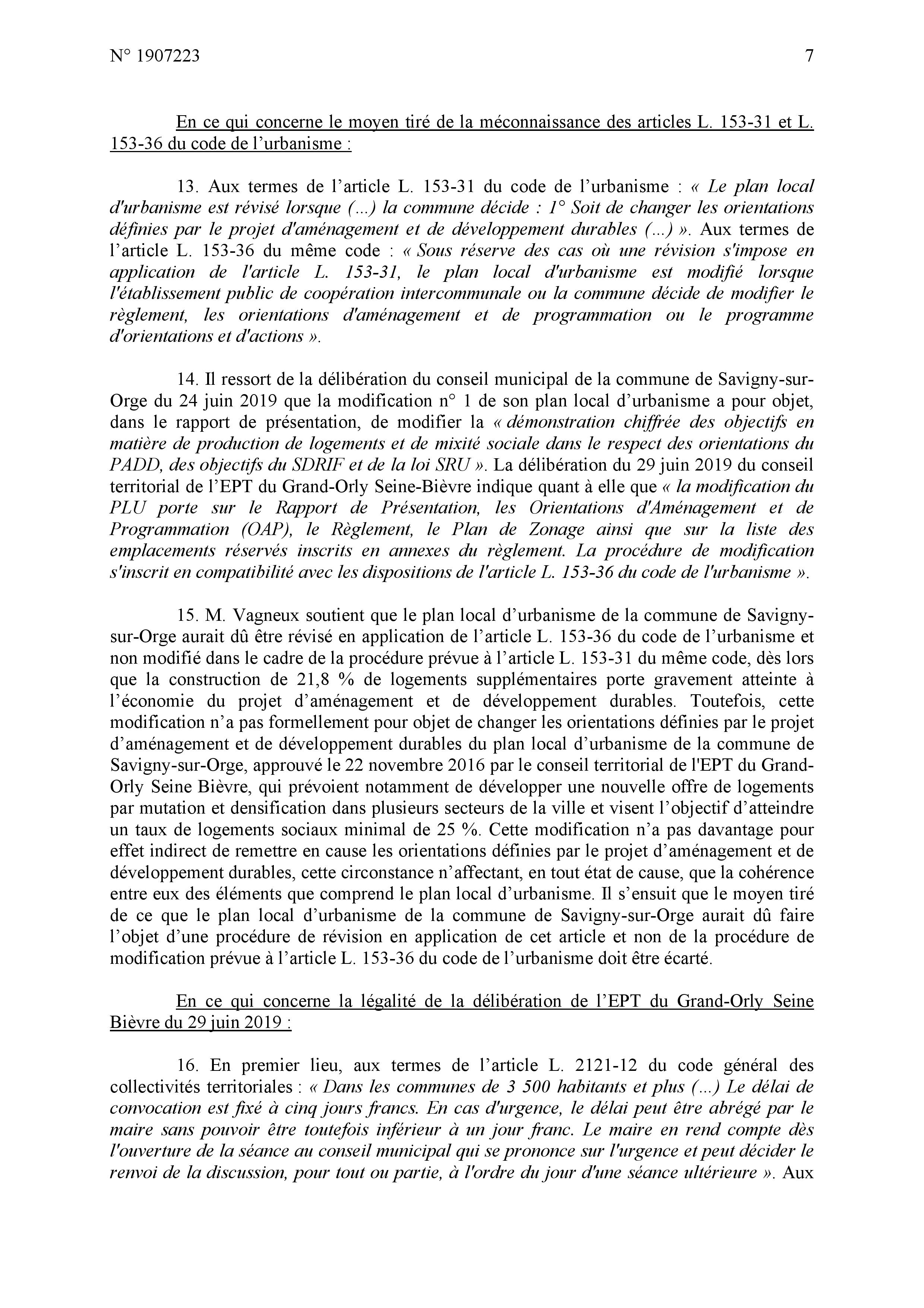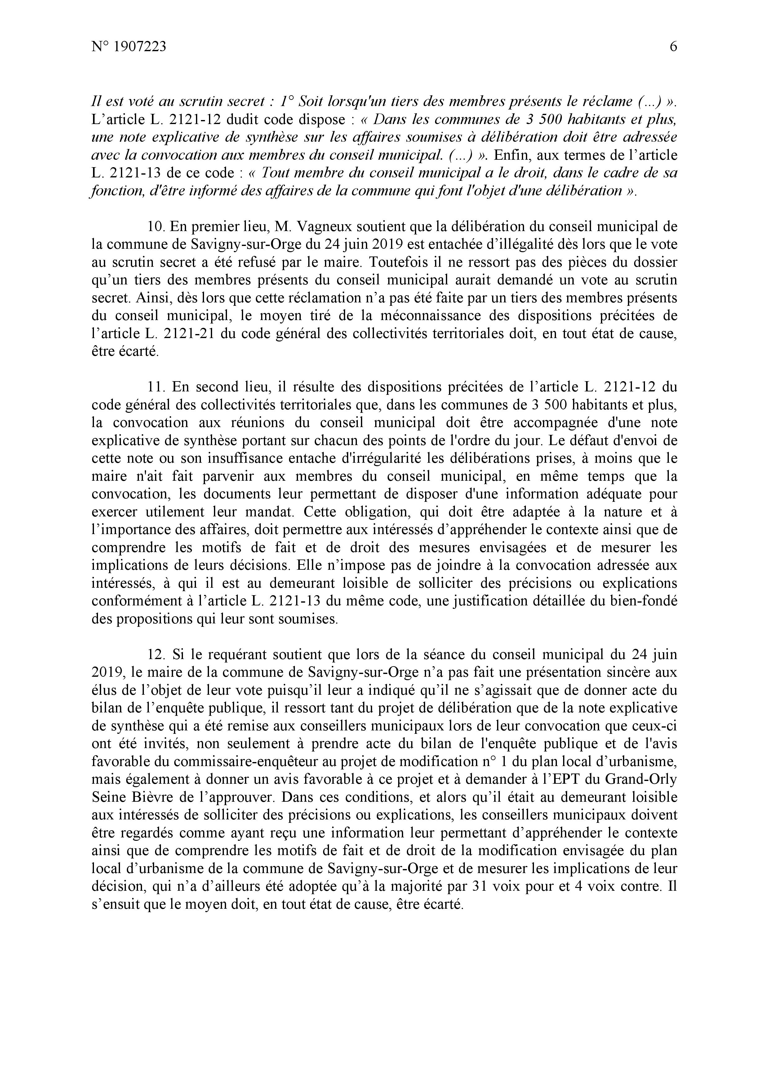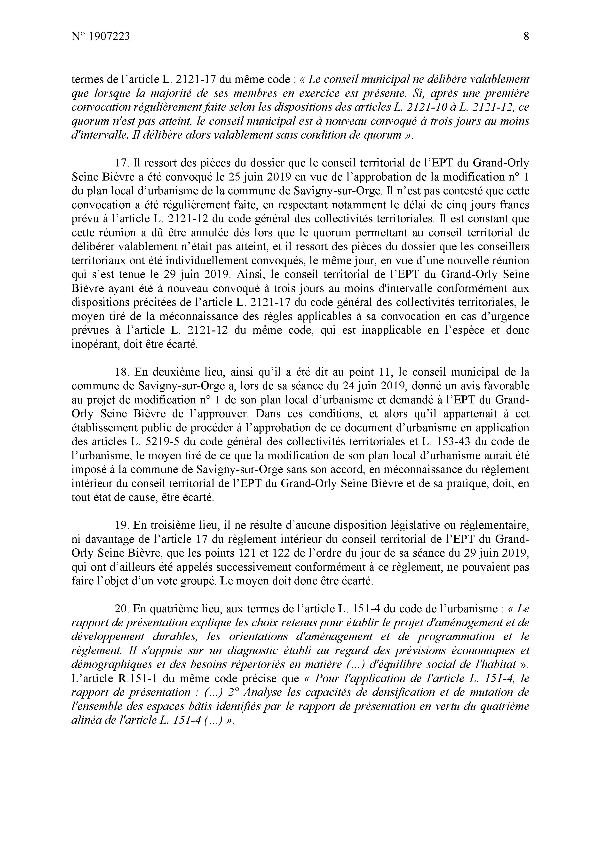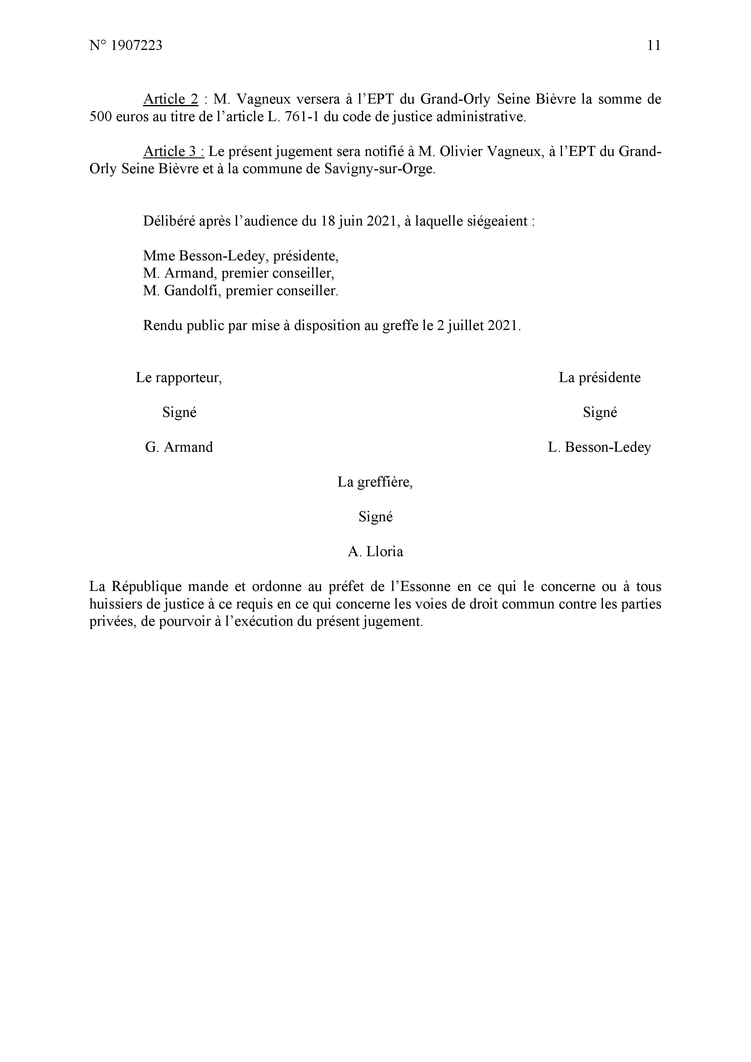 Le jugement est relativement complet ; je maintiens néanmoins le vice de procédure au niveau de l’approbation de la délibération savinienne quand MEHLHORN avait dit que ce n’était qu’un donner acte alors que c’était bien un vote d’acceptation, et par conséquent le vice de procédure au niveau de la délibération intercommunale en tant que l’EPT s’est fixé pour règle de toujours respecter le vote des communes.