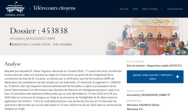 À noter enfin que l’affaire de David FABRE en est cependant toujours au stade du rapporteur public…