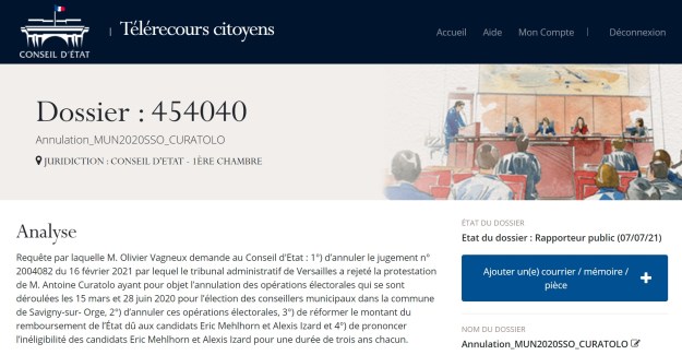 Car si la Haute juridiction a effectivement communiqué mes deux requêtes aux défendeurs pour respecter le principe du contradictoire, tout en leur fixant 15 jours pour y répondre, le rapporteur public a déjà déposé son rapport, ce qui veut dire, même si au Conseil d’État l’instruction n’est close qu’après avoir entendu les observations orales des parties, qu’il a déjà sa solution et qu’il se fout des moyens de défense que pourront produire les autres.