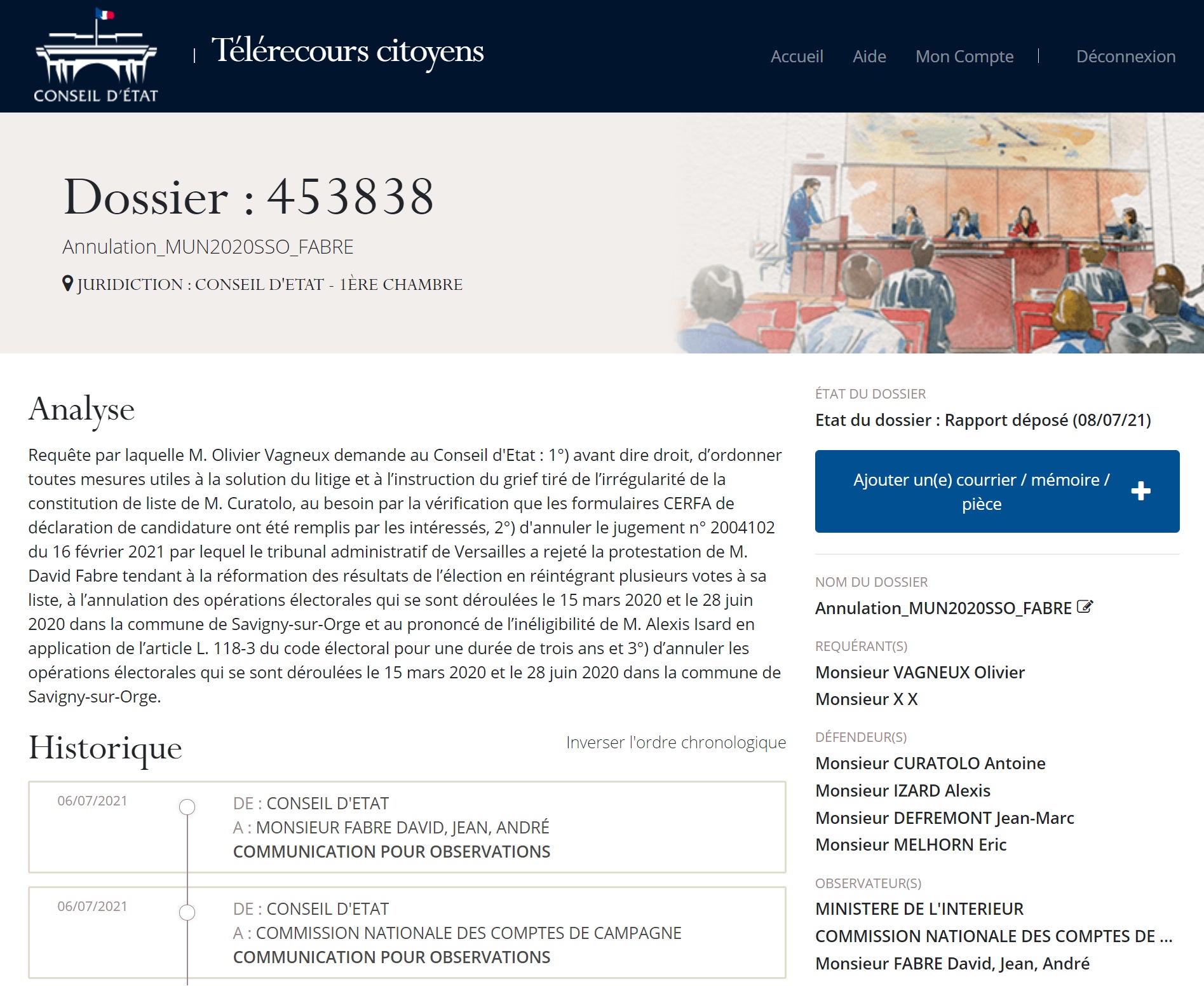 Pendant ce temps, pour l’affaire de David FABRE (au 10 juillet 2021)…