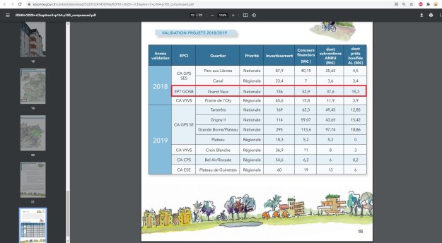 Mais petit problème, la convention ANRU, signée par MEHLHORN le 25 janvier 2019, prévoyait un projet à 136 millions d’euros dont 37,6 millions, soit 27 %, pris en charge par l’État ! (Donc bien au niveau des 25 % en moyenne).