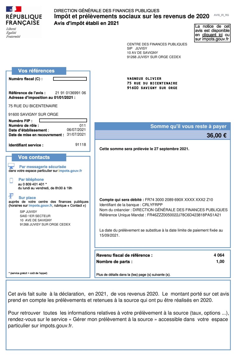 Comme chaque année, je publie mon avis d’imposition sur le revenu.