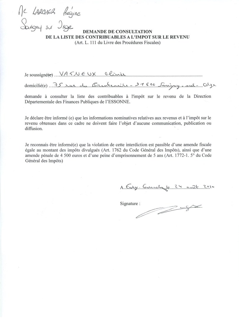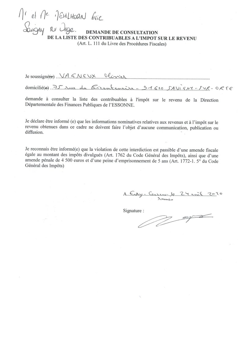 Il suffit de se rendre à la Direction départementale des finances publiques (sur rendez-vous) avec le nom des personnes et demander à consulter la liste des contribuables à l’impôt sur le revenu.