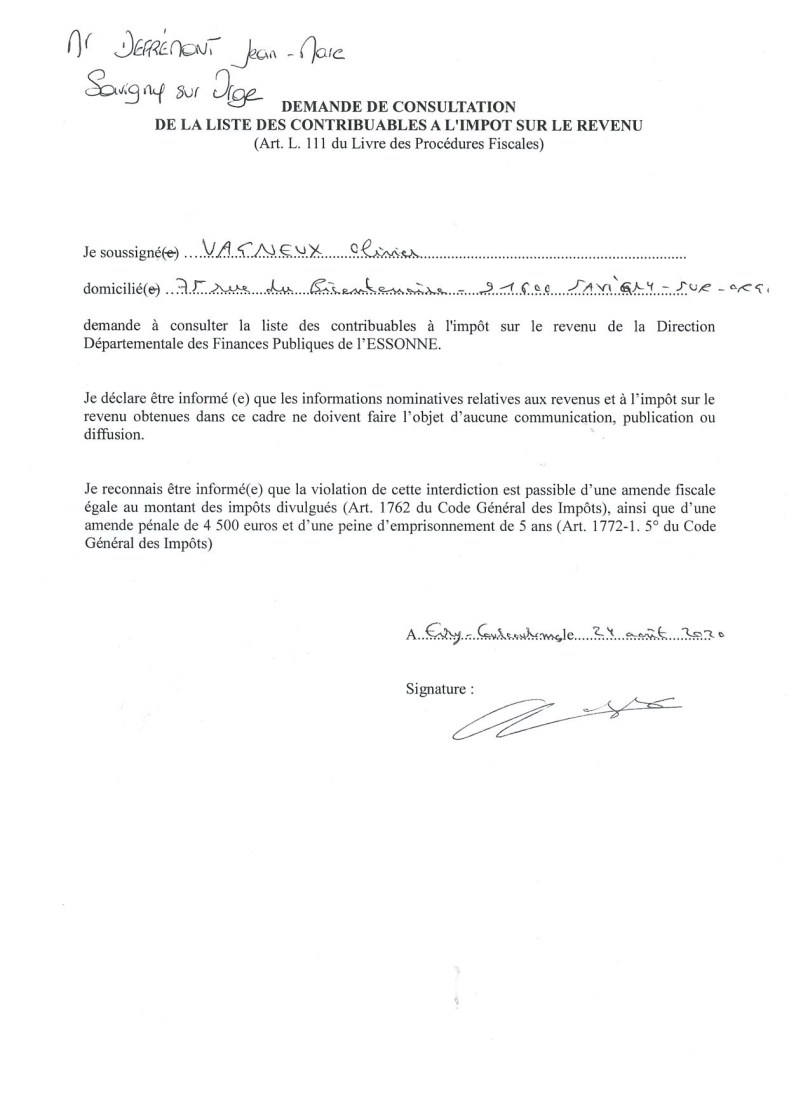 Je vous rappelle enfin que tout contribuable domicilié dans le département peut accéder à ces informations que je publie là ; tout comme je les ai obtenus pour MEHLHORN et DEFRÉMONT (et leur femme/compagne).